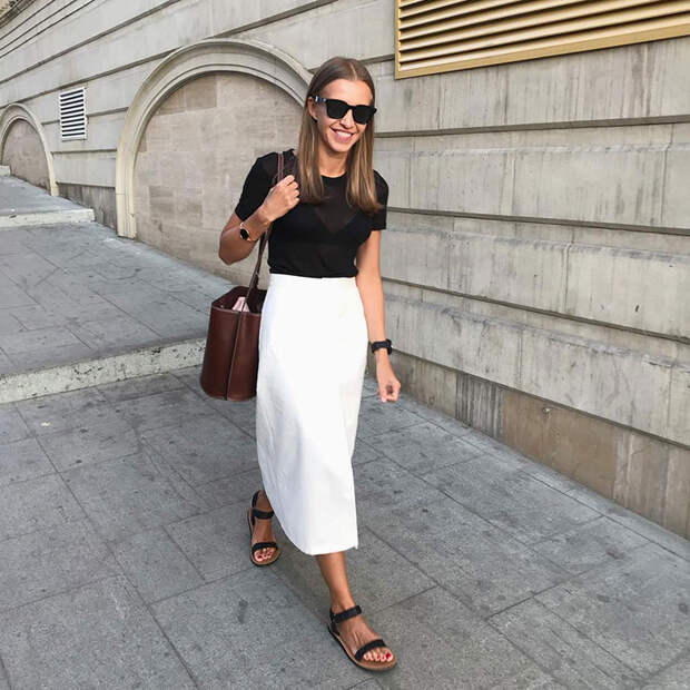 Кажется, что черно-белую гамму уже невозможно обыграть по-новому, но было бы желание. Вдохновляемся, не отрываясь от смартфона: модные инстаблогеры носят белые рубашки, черные шорты, двойные платья и освежают классическое сочетание принтами и акцентной обувью.