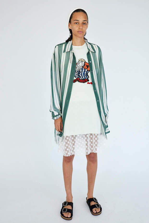 Правда, в отрицательном ключе - коллекцию, которая была вдохновлена стилем гранж, актуальной музыкой и героями (это Курт Кобейн и Кортни Лав), разнесли в пух и прах. Сам Джейкобс говорил про нее, что хотел отразить моду, которая рождается на улицах, а потому творческим компромиссам не могло быть места. Публика заявила, что гранж ужасен, а вскоре после этого дизайнера тайно уволили из Perry Ellis. Однако этот показ стал толчком к его дальнейшему бескомпромиссному творчеству, а потому уже в 1997 году он занял пост креативного директора Louis Vuitton.В коллекцию вошли сарафаны в цветок, песочные тренчи, которые сочетаются с грубыми ботинками, классические кеды и разноцветные платья-чулки, короткие джинсовки, черно-белый полосатый костюм, клетчатые рубашки и многое другое. Переизданные вещи можно будет приобрести совсем скоро - их выход планируется в рамках круизной коллекции Marc Jacobs.