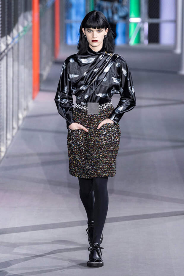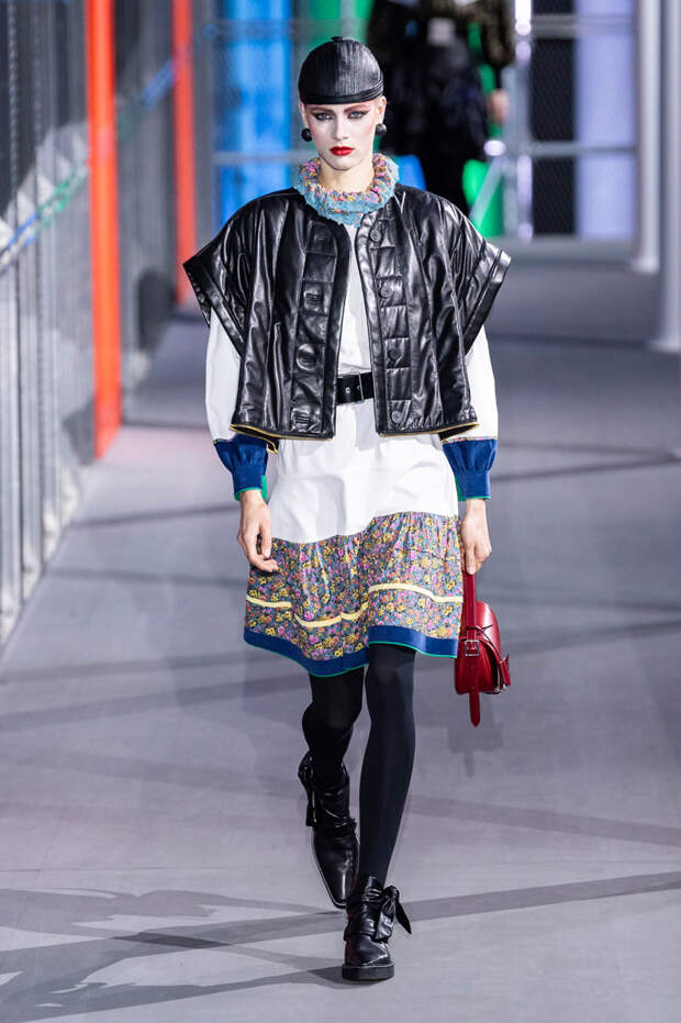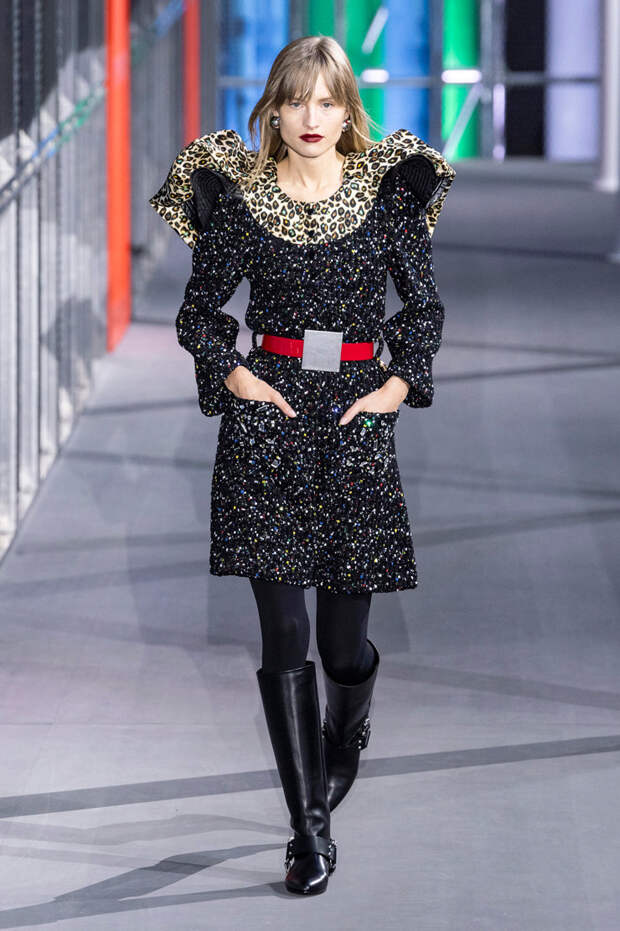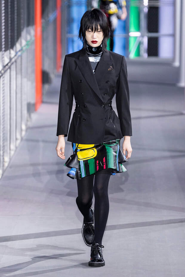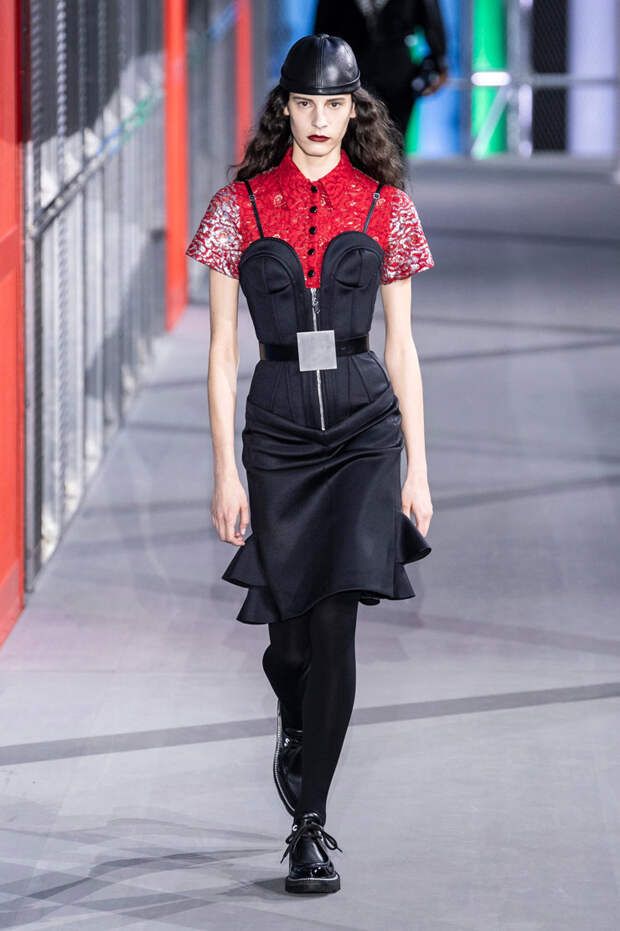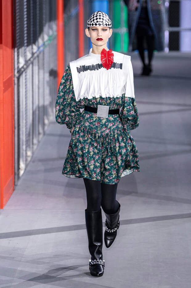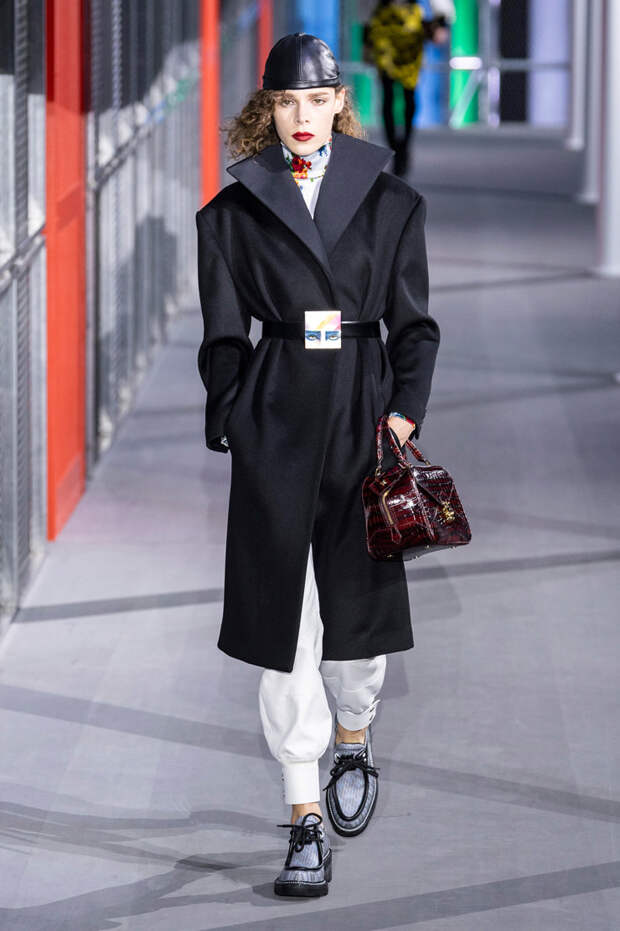 Готов к неоднозначной реакции был и сам дизайнер — Центр Помпиду, как он отметил, тоже сначала критиковали, "но он стал центром Парижа. Для культуры, для молодых людей, для всех, кто смотрит в будущее. Глаз привыкает со временем, вкусы развиваются и меняются". Именно Помпиду и вдохновил Жескьера на создание этой коллекции — точнее, не сам арт-центр, а площадь перед ним, где всегда кипит движение. "Я люблю сидеть там и наблюдать за людьми. Там видишь, каков Париж на самом деле. Видишь уличных танцоров, посетителей музеев, которые бывают эксцентричными, людей из мира моды, готов — всех", — рассказывал он.Все они, пестрая толпа, которая представляет собой Париж в миниатюре, и должны были стать героями коллекции. Именно поэтому осенний сезон стал коктейлем из всего, что только можно представить. Но все-таки, глядя на подиум, невольно начинаешь думать, что следил Николя Жескьер за парижанами не вчера, не в прошлом году и даже не в нашем на самом-то деле веке, а где-то в 80-х. От ощущения, что все это время смотришь ностальгическую фантастику, как и в нескольких прошлых сезонах, сложно избавиться: в кадре mom's jeans и брюки-бананы той же посадки, плечи, яркие краски... Школьные куртки, как у Марти Макфлая, жакеты с пышными рукавами и прямые юбки, как у героинь Молли Рингуольд, платья с корсетами, как у звезд Dance TV, серебряные доспехи и все те же чудные шапочки, как у космических пришельцев в старом наивном сай-фае — практически все о чем-то напоминает.