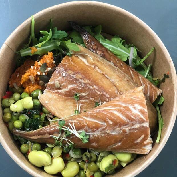 Салат со скумбрией на гриле и семенами или гуакамоле - отличный вариант, чтобы продержаться до вечера.Ужин