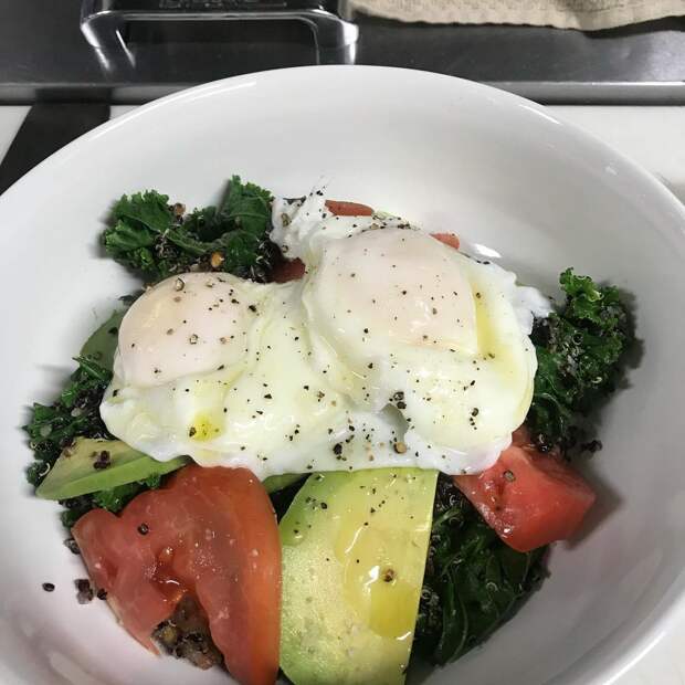 Утром актрисе требовалась особая энергия, которой было бы достаточно на день вперед. Обычно завтрак звезды представлял собой красочную комбинацию из яиц-пашот, киноа, помидоров и авокадо. Полезные углеводы в киноа помогают восстановлению мыщц после интенсивных физических нагрузок, так что результаты тренировок будут только прогрессировать. Галь пила и много воды, чтобы избежать обезвоживания.
