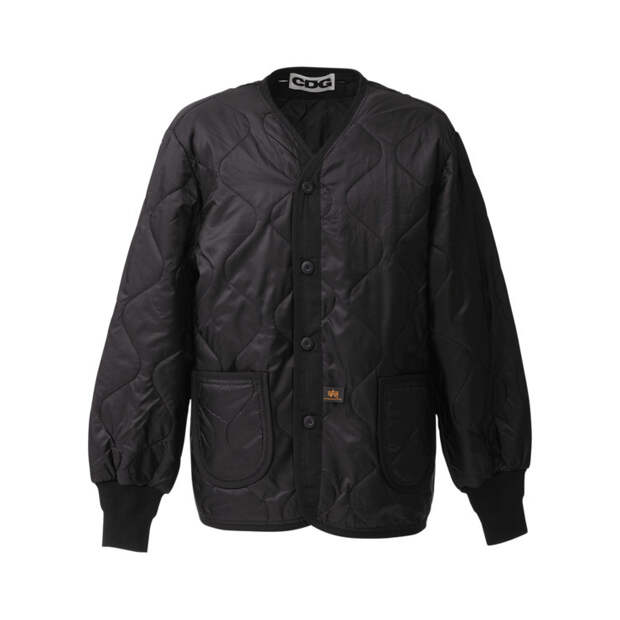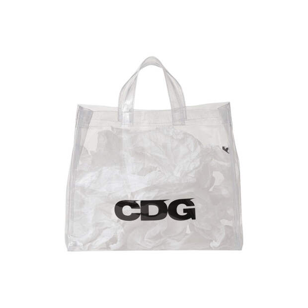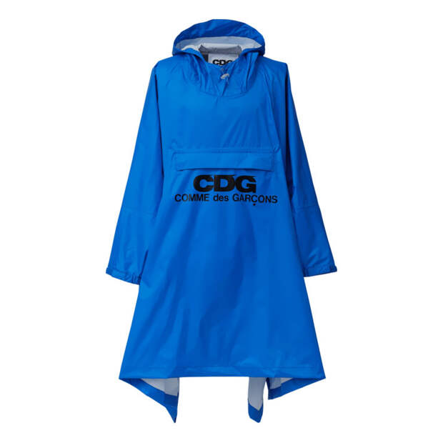 Представлена, например, необычная удлиненная парка, сделанная из купры и шерсти, прозрачный шоппер из винила, белые футболки с неоновыми надписями, яркий синий дождевик и стеганный бомбер. Также можно найти универсальные черные худи и свитшоты на каждый день. Вещи из первой коллекции продаются на сайте CDG, и мы бы советовали поторопиться, — остромодный шарф, выполненный в фанатской стилистике, или большинство размеров принтованных кед, созданных совместно с Vans, уже распроданы.