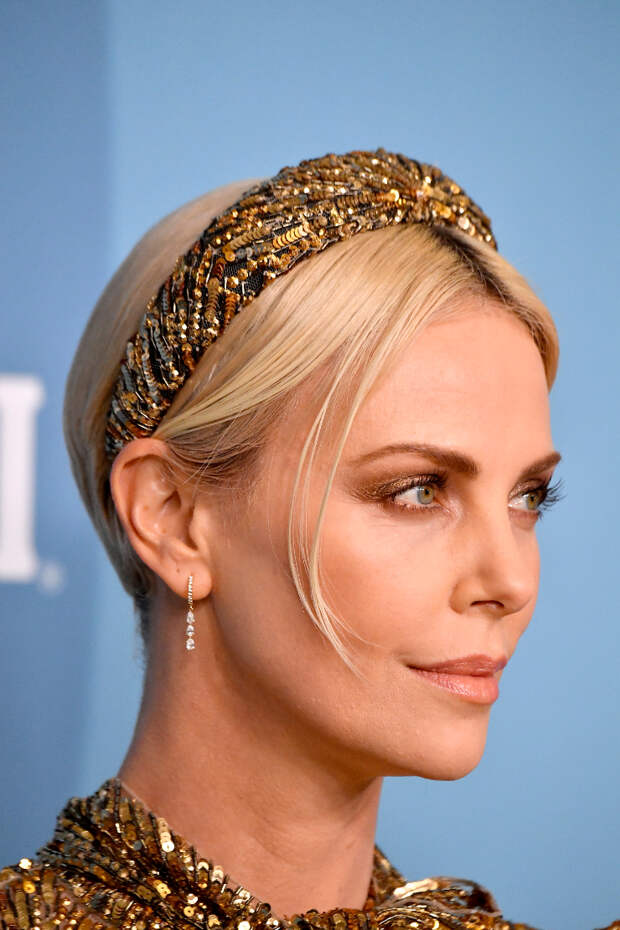 Но звездой вечера стала Шарлиз Терон, появившаяся в образе, которому можно аплодировать стоя. На ней было кастомизированное платье Louis Vuitton со смелым вырезом декольте, расшитое золотистыми пайетками. Волосы звезды были элегантно собраны, а на голове красовался ободок в тон наряду. В этот вечер Шарлиз не только ловила восхищенные взгляды, но и получила особенный приз в номинации «В центре внимания» (Spotlight Award).
