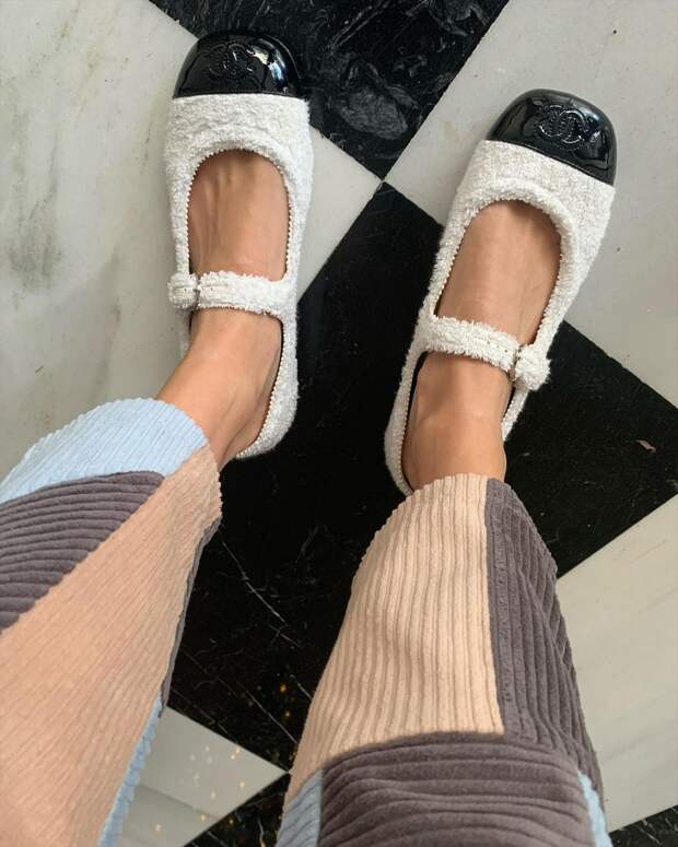 Одним из главных трендов стали туфельки «мэри-джейн». Аккуратные балетки с тонким ремешком есть, например, у Miu Miu. Бренд представил велюровые и декорированные глиттером «мэри-джейн». В этом сезоне многие дизайнеры не скупятся на обувь с украшениями: пряжками, цепями, жемчугом, стразами. А Stella McСartney и вовсе предлагает вариант с замочком-молнией на мыске. Такие балетки хороши для формального образа, но могут вписаться и в повседневный лук. Нужно лишь сделать акцент на самой обуви, выбрав базовый аутфит, как это делают многие трендсеттеры.