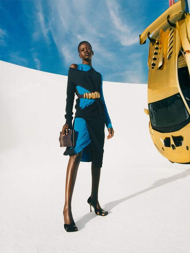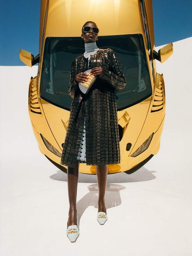 Фотограф Тайрон Лебон запечатлел моделей Адут Акеч, Августа Александра и Фернандо Кабрала на фоне подвешенного в воздухе золотого Lamborghini. Он, по задумке Ли, олицетворяет новое видение современной недостижимой роскоши. Играя с постмодернистскими символами статуса и гламура, модели позируют в футуристичных нарядах из осенней коллекции Bottega Veneta в парке Джошуа-Три в штате Калифорния. В противоположность им, на одном из снимков немецкая топ-модель Анна Эверс сидит у бассейна в одних туфлях.