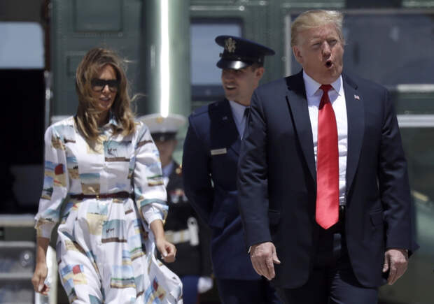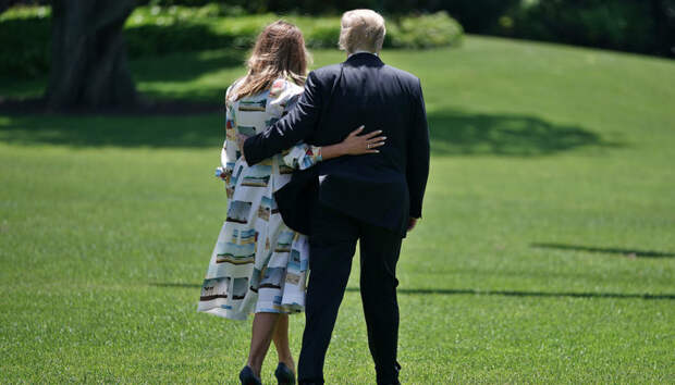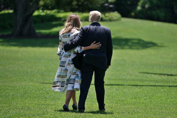 Вчера днем Дональд и Мелания Трамп покинули Белый дом: ближайшие несколько недель президентская чета будет находиться в большом туре, первой остановкой которого станет Япония. В путешествие первая леди США отправилась в простом, но очень стильном образе: фотографы поймали Меланию на лужайке в платье-рубашке с арт-принтами из последней коллекции Рафа Симонса для Calvin Klein. Образ дополнили изумрудного цвета лодочки и неизменные солнцезащитные очки на пол-лица. Прекрасный комплект для похода на выставку современного искусства.