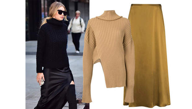 Еще год назад все фэшиониста мира поняли, что лучшая пара для тонкой шелковой юбки — плотный оверсайз-джемпер из трикотажа. Здесь отлично работает правило контраста, когда "грубые" и объемные вещи полагается сочетать с тонкими, легкими и изящными. С тех пор мы никак не можем перестать носить эти женственные образы с легким флером ретро.
