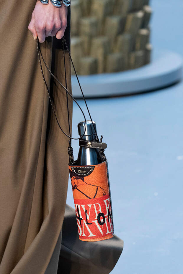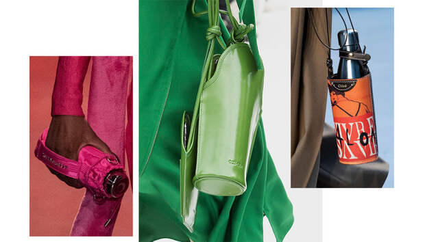 Например, одним из самых неожиданных аксессуаров грядущего осенне-зимнего сезона стали сумки для многоразовых бутылок для воды. По задумке дизайнеров, красивые кожаные чехлы должны навсегда отбить желание покупать воду в пластике. Действительно, зачем, когда можно носить свою эко-френдли бутылку в специально придуманной для этого сумочке Сhloe, Kenzo или Marine Serre.