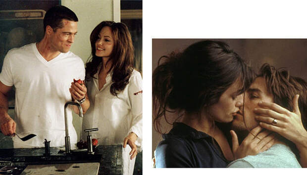Пожалуй, самый известный служебный роман, случившийся на съемках, — это Бранджелина. У этой эффектной парочки не было шансов — и сюжет, и обоюдная привлекательность подталкивали будущих мистера и миссис Питт в объятия друг друга.
