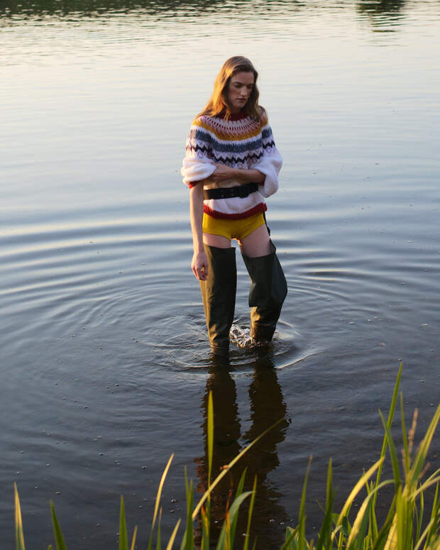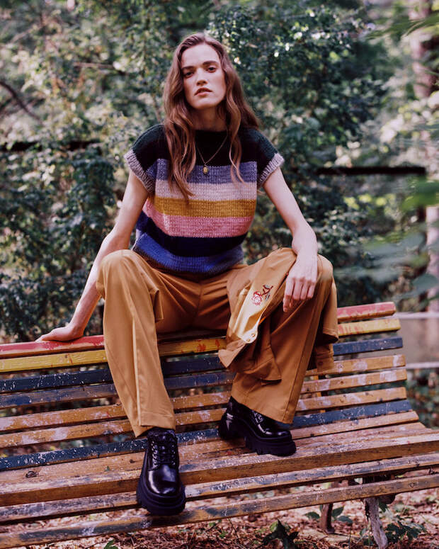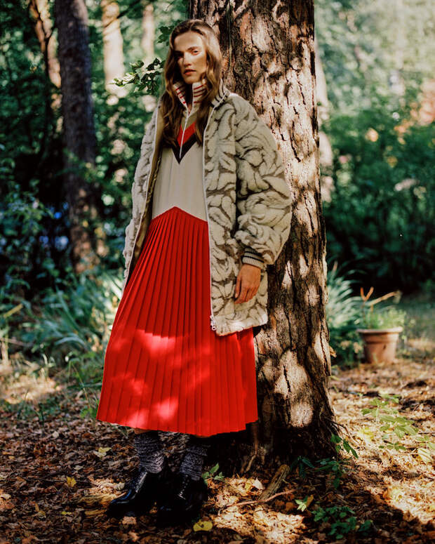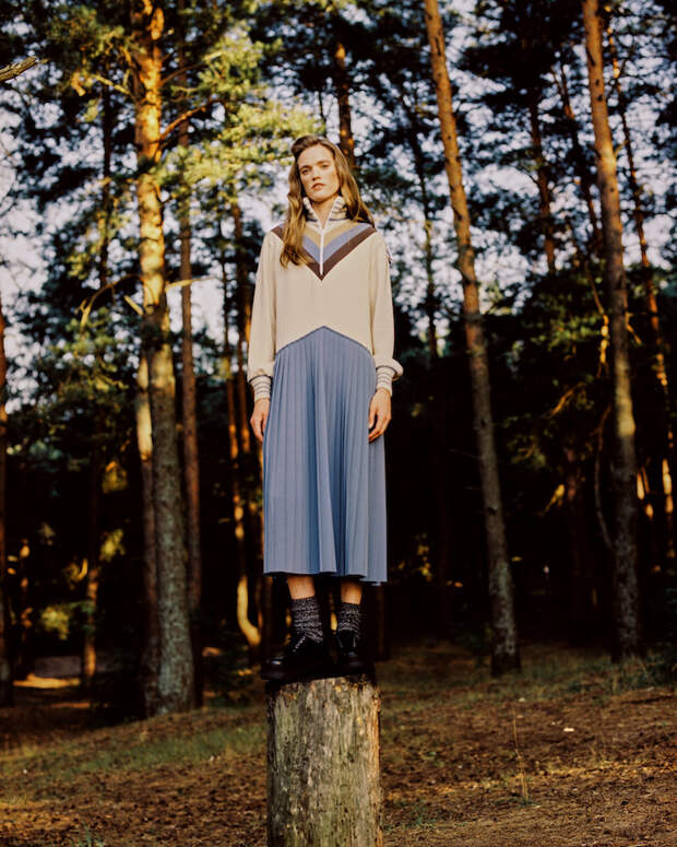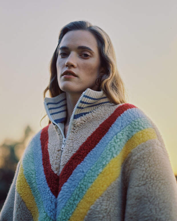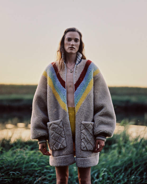 Впервые дизайнер представила уникальные бомберы и шубы из стриженного овечьего эко-меха, собранные по специальной технологии, а также цветные трикотажные вещи, связанные вручную мастерицами из Грузии. Трогательная деталь: в коллекцию также вошли варежки, балаклавы и косынки, которые связаны вручную бабушками из разных областей страны, самой старшей из которых исполнился 91 год. Над лукбуком работала известный фотограф Катя Туркина, которая вместе со своей сестрой Алисой сняла модель Милану Круз на пленочную камеру.