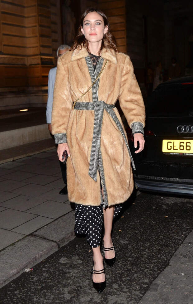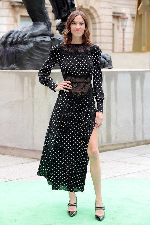 Алекса Чанг славится своим неповторимым стилем и модными экспериментами. К примеру, на праздничном вечере в Королевской Академии художеств, прошедшем вчера в Лондоне, дизайнер и модель появилась в эффектном вечернем платье, которое сразу привлекло всеобщее внимание. В нем объединились элементы романтики и гранжа: классический гороховый принт мирно соседствовал с высоким разрезом, смелыми гипюровыми "островками" и остроносыми лодочками из глянцевой кожи с двумя ремешками.