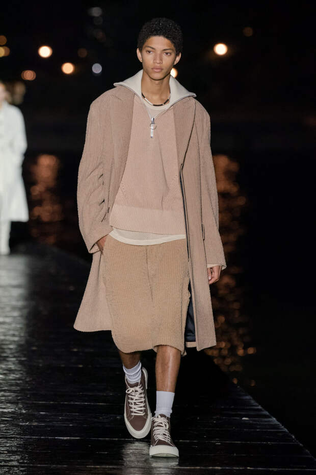 Новая коллекция бренда стала гимном командной работе и слаженности усилий еще до того, как была выпущена. Она делалась полностью в локдауне, лично в студии все это время присутствовал лишь сам креативный директор Александр Маттиусси. Все остальные 160 сотрудников работали дистанционно, из своих домов. Создать полноценную мужскую и женскую коллекцию в таких условиях — практически акт героизма. Но члены команды Ami выдержали это испытание стоически и представили одну из самых крепких и цельных своих коллекций. А показ в мерцающих огнях вечернего Парижа только усилил впечатления от результата.