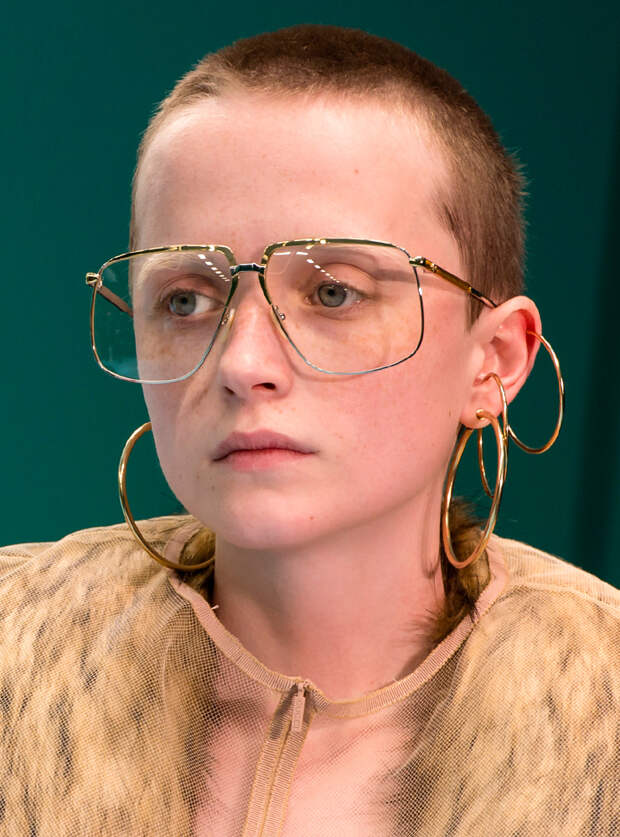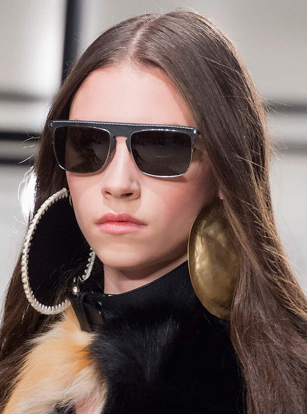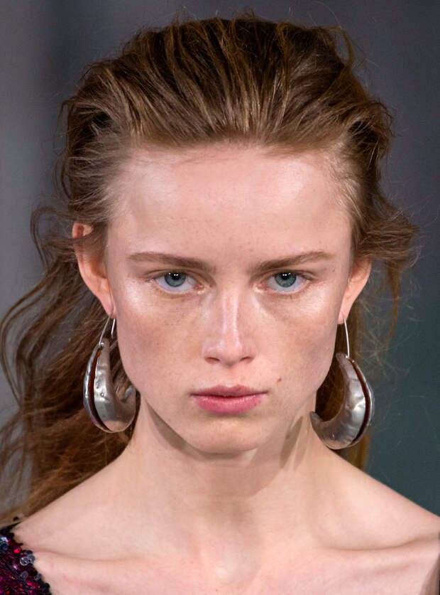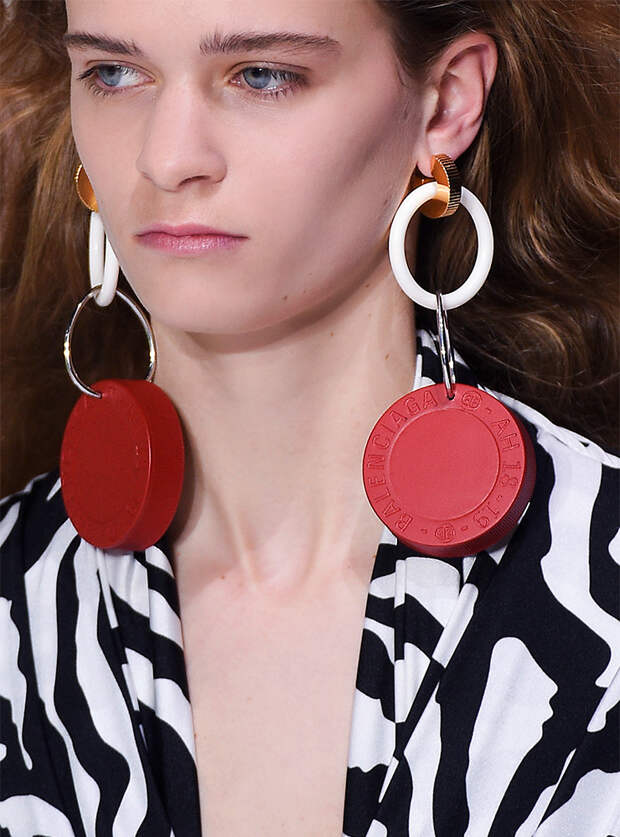 С серьгами все, конечно, сложно. Ведь носить в ушах килограммы металла или пластика тяжело, больно - да и незачем. Можно выбирать крупные, но легкие серьги: ажурные, как у Saint Laurent, собранные из кучи невесомых колец, как у Gucci. Еще один вариант, который нам очень нравится, предложен в коллекции Marine Serre - можно просто продеть в серьгу-кольцо пестрый шелковый платок.