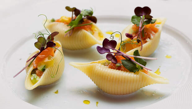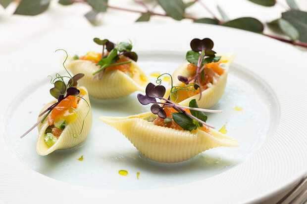 Что надо брать? Шаомай (паровые пельмени) с креветками – их подают с фигуркой Хотея, одного из семи богов счастья, причём такие фигурки Ли Сянцай сам делает из соли. Утка по-пекински идеальная - попросите Сергея порекомендовать к ней вино. Севиче из дорадо с соусом мисо и салат с хумусом из эдамаме - очень неплохо. А копченого лосося со сливочным кремом и скрокьяреллой ставят на стол вместе с маленьким аквариумом - девушки радуются и выкладывают плавающую рыбку в Инстаграм. Из десертов берите «Намелака» («сливочное» в переводе с японского) из сладкого горошка и мяты, это и мусс, и мороженое, и все удивительное по вкусу.