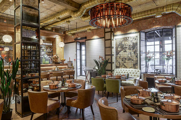 Ресторан находится в здании бывшей табачной фабрики, еще дореволюционной, и в интерьере это чувствуется. Нечто среднее между лофтом и буржуазной респектабельностью – несомненно, красиво.