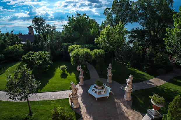 Он похож на усадьбу с каменными мостовыми и по-европейски шикарно ухоженными садами, с домами, словно свезёнными из разных частей Европы. Английские домики, французские шато, голландский, не побоюсь этого слова, дворец: внутри все заставлено антиквариатом, а территория выглядит так, что лишь по редкому кадру догадаешься, что ты в России. Можно собрать дом, чтобы он выглядел как в Европе, а вот как создать сады и лужайки, чтобы они смотрелись так, словно ты где-то во Франции, где эти газоны подстригают последние двести лет? Все вместе дает потрясающий эффект выпадения из действительности.
