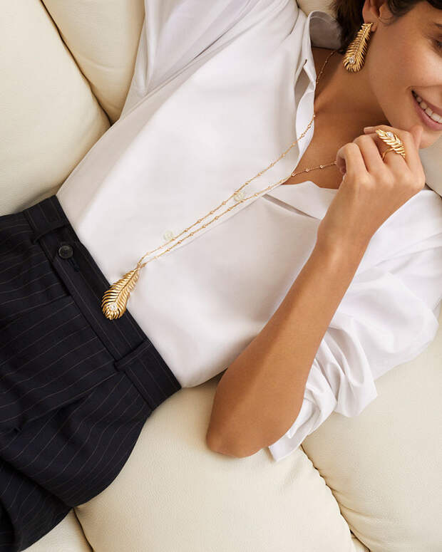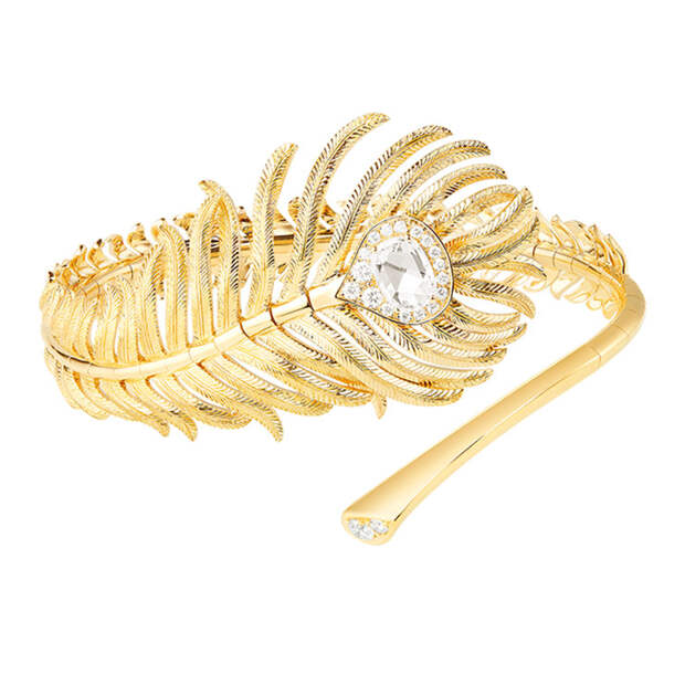 160 лет назад Фредерик Бушерон задумал создать золотое колье, такое же красивое и воздушное, как перо павлина. Так появилось знаковое украшение Дома – гибкий «восклицательный знак», мягко охватывающий шею благодаря искусной работе мастеров Boucheron. Позже мотив развился в кольцах, серьгах и подвесках, и этой весной бренд вновь представил новинки уже легендарной коллекции.