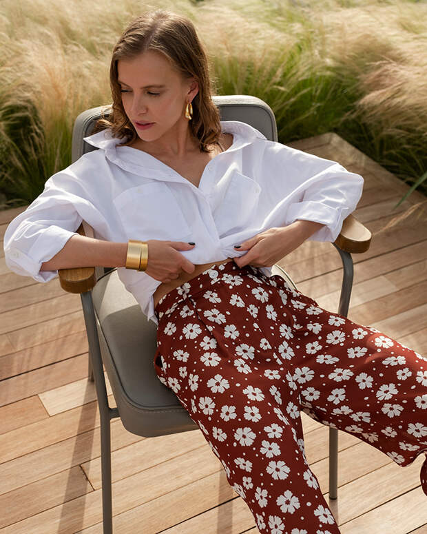 Но не обошлось и без привычной классики: широкие брюки, миди-юбки, базовые топы и рубашки подойдут тем, у кого настрой не романтический, а боевой и задорный."В июньской коллекции 12Storeez много свободных силуэтов: они не сковывают движений и ваших желаний, не заставляют упрекать себя из-за любимого десерта вечером накануне. Мы предлагаем забыть о строгих правилах и дать себе отдохнуть", - описывает капсулу соосновательница бренда Марина Голомаздина. И к ее совету однозначно хочется прислушаться этим летом.