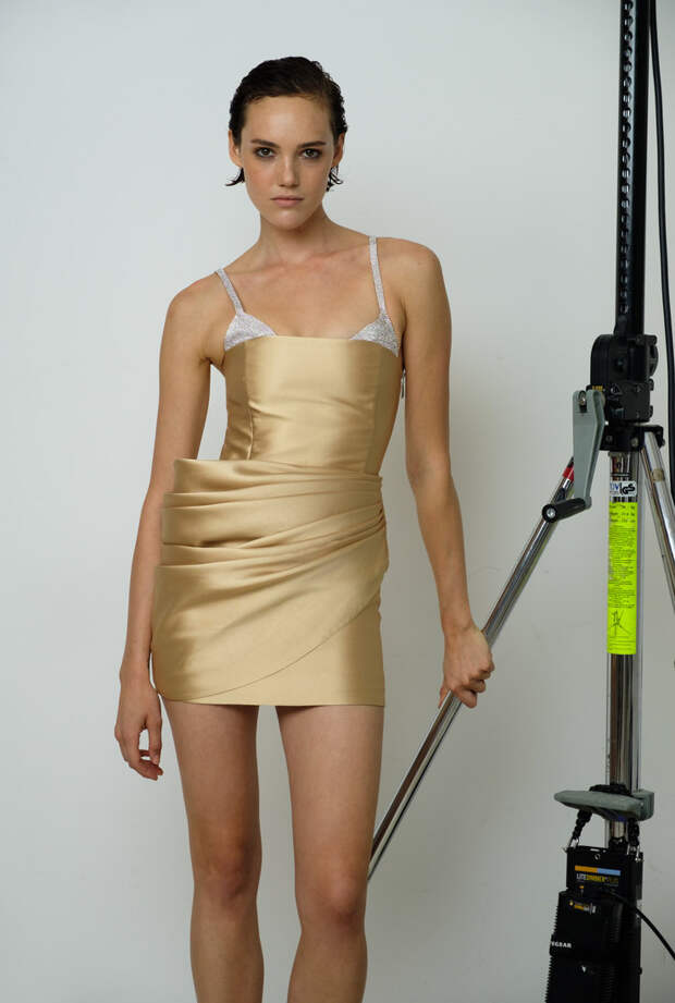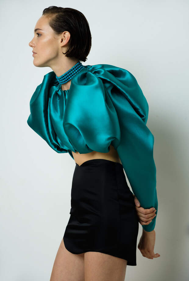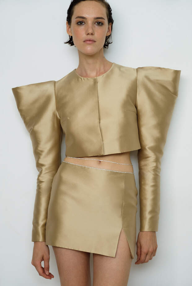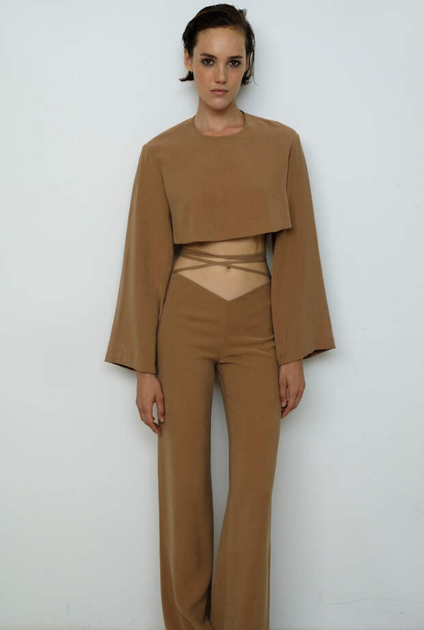 В основу новой коллекции легла мода конца 80-х - начала 90-х. Отсюда объемные, но уже мягкие и округлые, а не острые плечи топов и жакетов. Юлия Калманович вдохновилась лучшими сценическими образами Фредди Меркьюри и коктейльными платьями, в которых ходили на вечеринки юные Кейт Мосс, Наоми Кэмпбелл и Кристи Терлингтон. Отсюда — с одной, стороны, игривые мини-платья, а с другой — футуристичные формы, глубокие цвета и облегающие брюки с завышенной талией, как у рок-звезд того времени. При этом коллекция не выглядит бесконечным рядом ретро-отсылок: благодаря свежему сочетанию цветов и фактур, эона остается современной и актуальной. Цветовая гамма нового сезона KALMANOVICH построена на сочетании и контрасте природных оттенков и более ярких, отсылающих к моде конца 80-х. Бежевые костюмы и небесно-голубые комбинации соседствуют с брюками в коричневом латексе и впечатляющим мини-платьем с асимметричной деталью на рукаве в цвете electric blue. Сочетание блестящих и матовых фактур, а также естественных и синтетических цветов делает эти образы живыми и интересными, добавляет им глубины и объема.