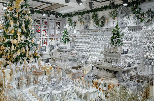 На 5 этаже универмага открылся традиционный новогодний базар, где можно найти самые редкие (и точно стильные) украшения на елку: шары в форме яичницы, пончиков, банки черной икры, папайи или раскрытой устрицы от немецкого бренда Inge Glass, маскарадные маски House of Seasons и даже Щелкунчиков, которые действительно умеют колоть орехи.