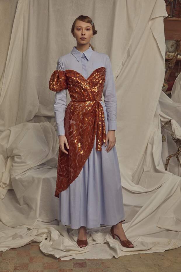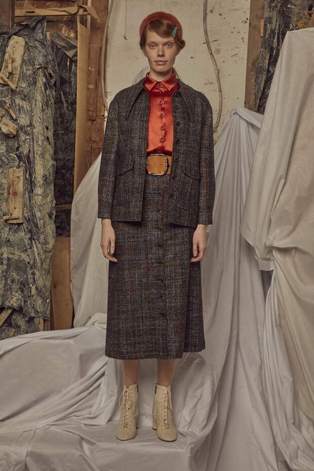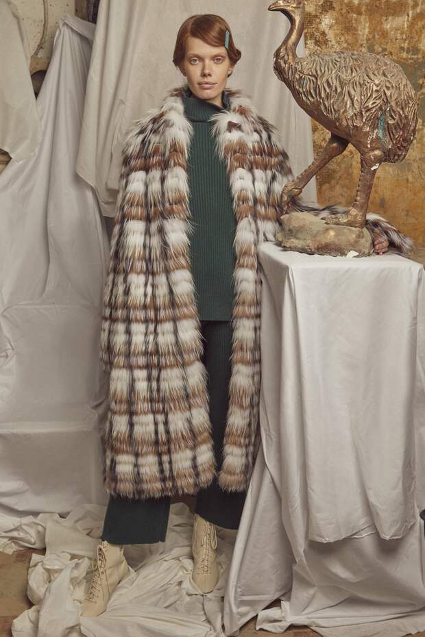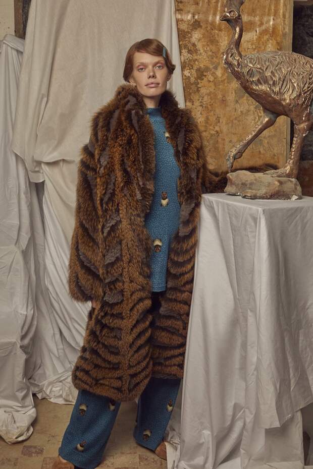 Новая осенне-зимняя коллекция Алены Ахмадулинной хранит немало сокровищ, ее хочется рассматривать с чувством и толком, ведь каждая, даже самая крошечная деталь, в ней не случайна. На блузах с перламутровым отливом притаились пуговицы-лисицы — эти же Патрикеевны ловко перебегают со страниц русских сказок на брючные терракотовые костюмы, мягкие шубы и юбки из вискозы (наш фаворит — незамкнутый пояс в форме лисы).