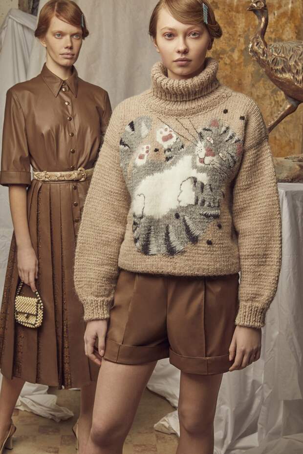 За ними неустанно следует кот ученый, с паре с которым только выигрывают платья с пышными юбками из невесомого шифона и экзотической кожи, "бабушкины" свитера, в которых хочется слушать предания старины глубокой, пальто с распускающимися весенними цветами и комбинезоны из мягкого денима.
