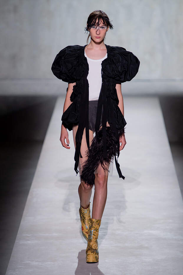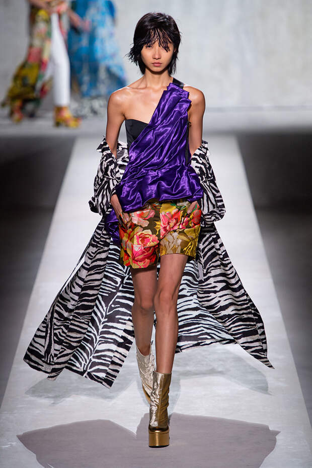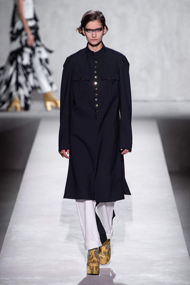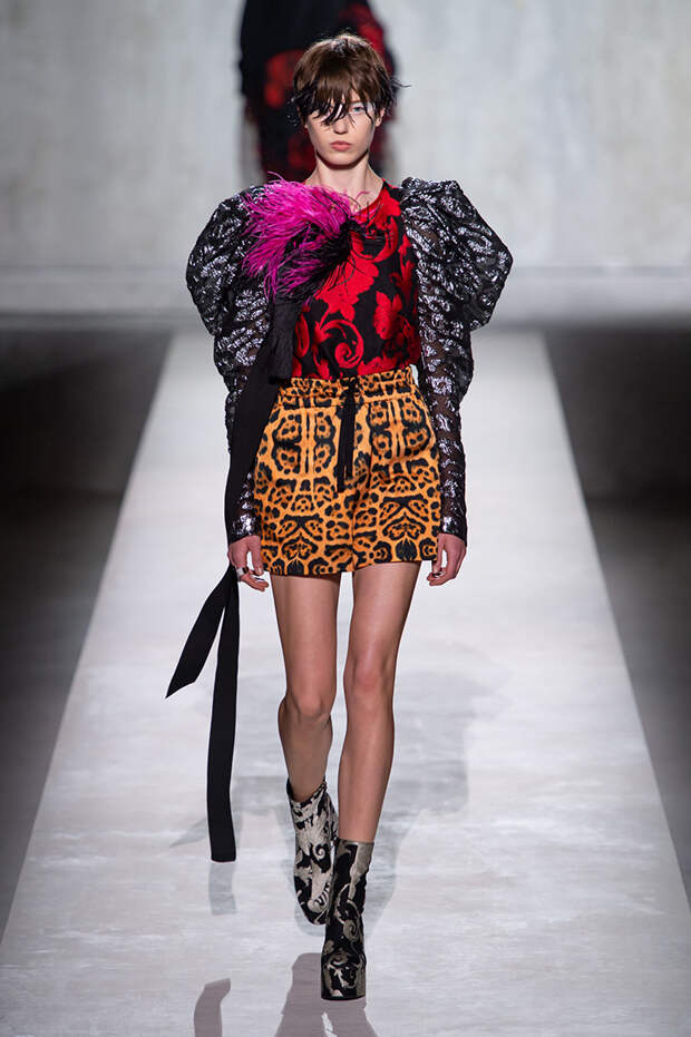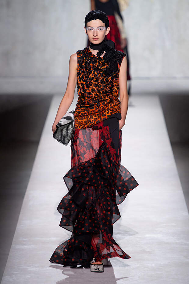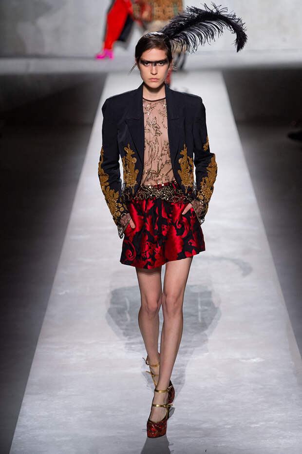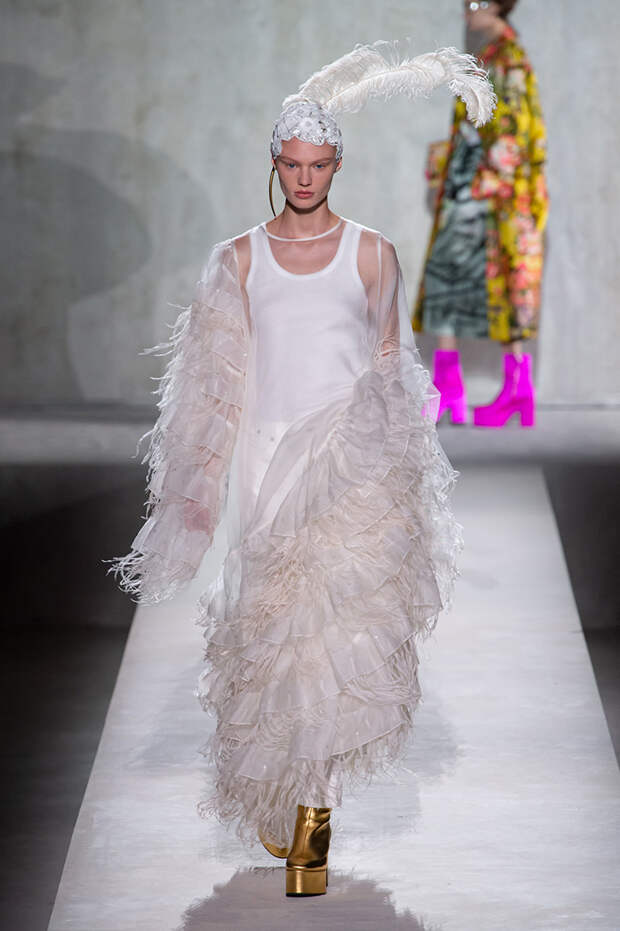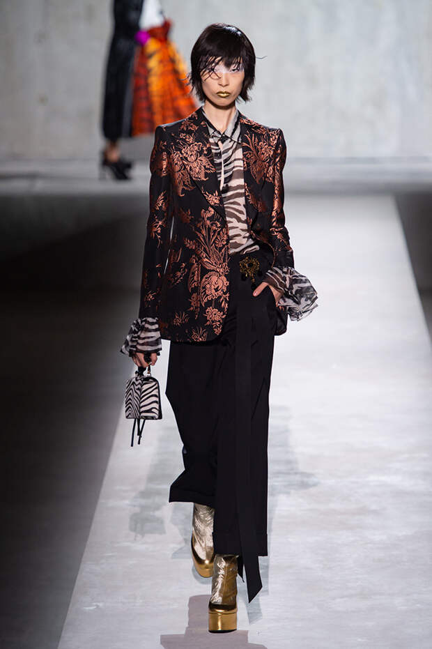 Дриса Ван Нотена мы в принципе любим за далеко не минималистичный подход к моде, но на этот раз он превзошел сам себя. Работал над коллекцией бельгийский дизайнер на этот раз не один, а в дуэте с Кристианом Лакруа — французским кутюрье, сделавшим себе имя в 80-х, а в 2009 году отошедший от дел собственного модного дома. Почему Ван Нотен пригласил к сотрудничеству именно Лакруа, о котором в последнее время не было слышно практически ничего? Потому что тот — настоящее воплощение яркой, вызывающе броской, максималистской моды 80-х и 90-х.