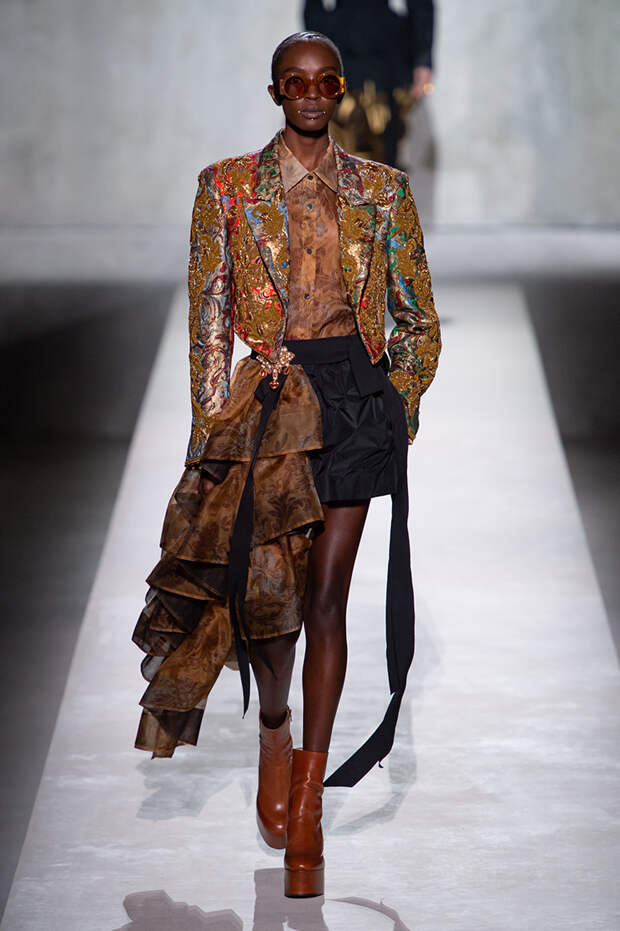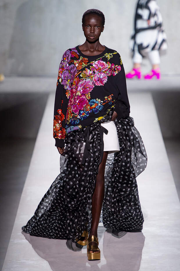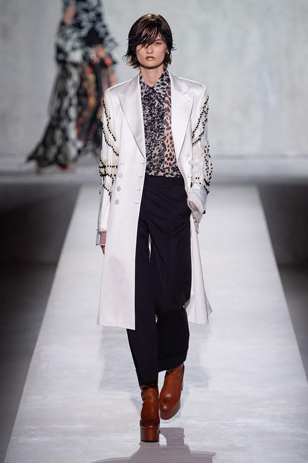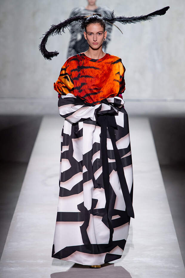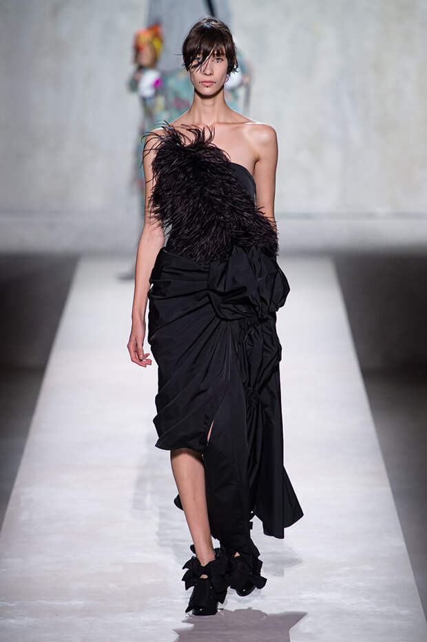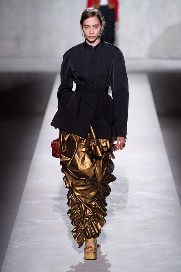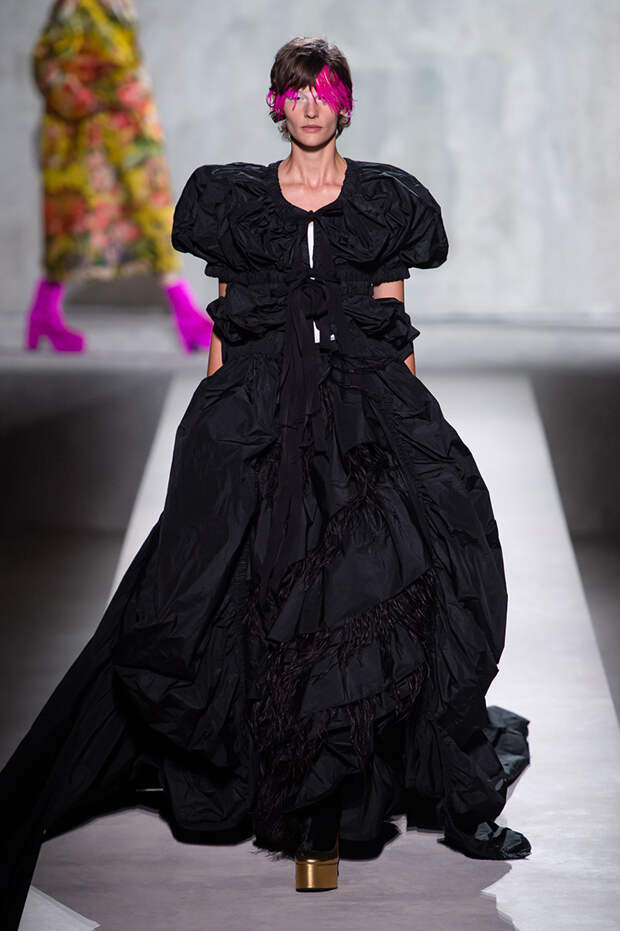 Дриса Ван Нотена мы в принципе любим за далеко не минималистичный подход к моде, но на этот раз он превзошел сам себя. Работал над коллекцией бельгийский дизайнер на этот раз не один, а в дуэте с Кристианом Лакруа — французским кутюрье, сделавшим себе имя в 80-х, а в 2009 году отошедший от дел собственного модного дома. Почему Ван Нотен пригласил к сотрудничеству именно Лакруа, о котором в последнее время не было слышно практически ничего? Потому что тот — настоящее воплощение яркой, вызывающе броской, максималистской моды 80-х и 90-х.