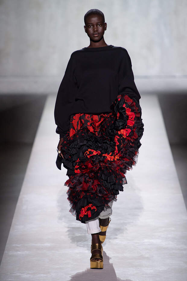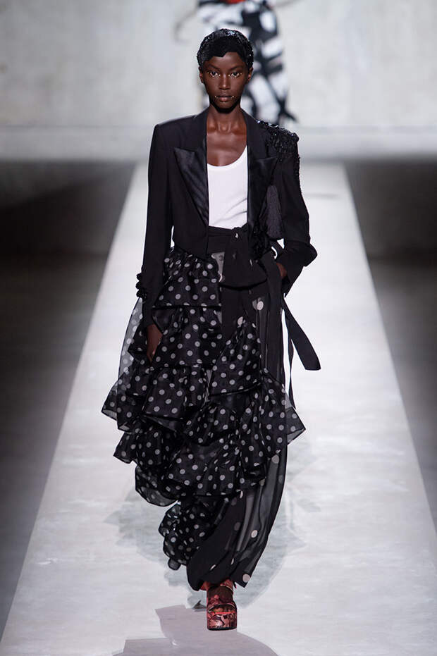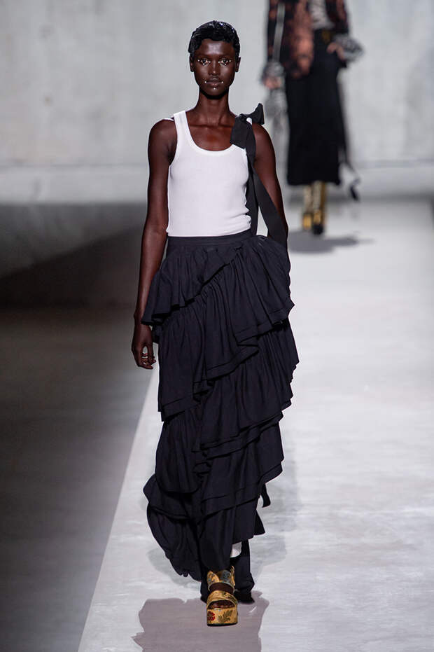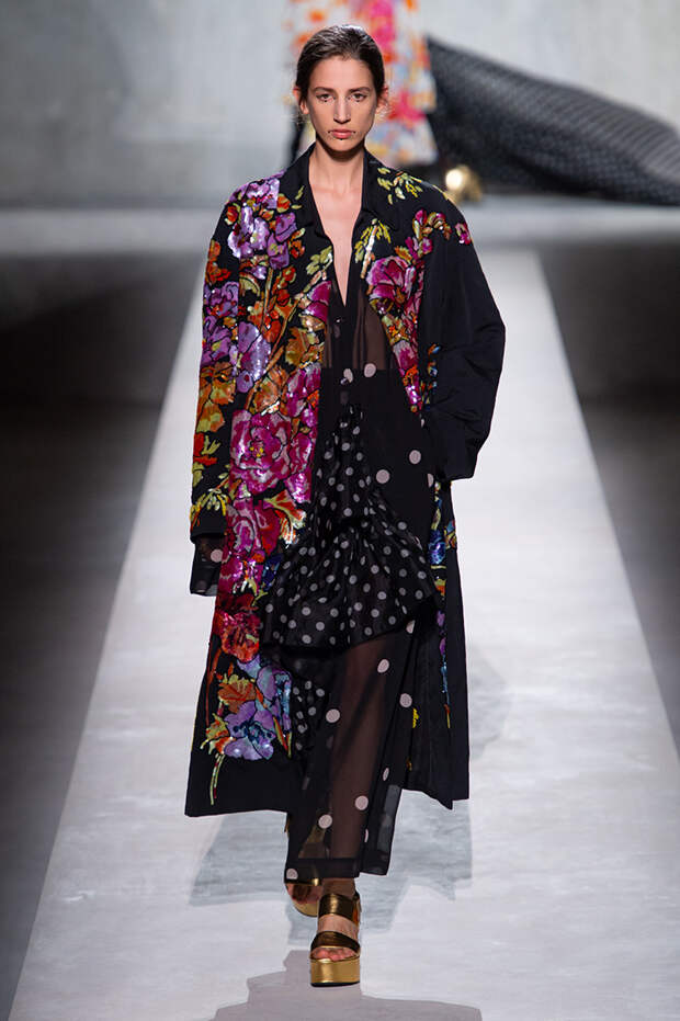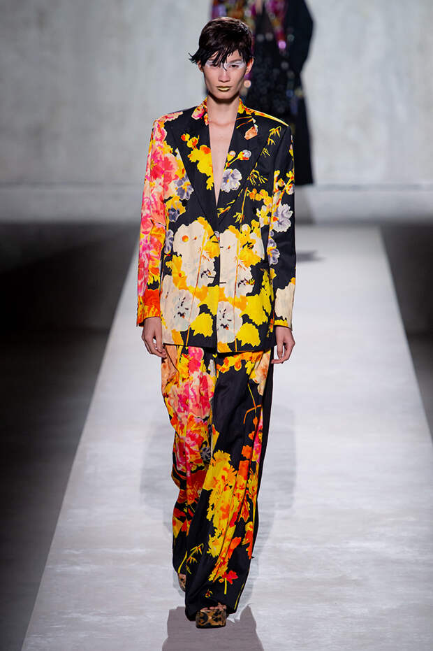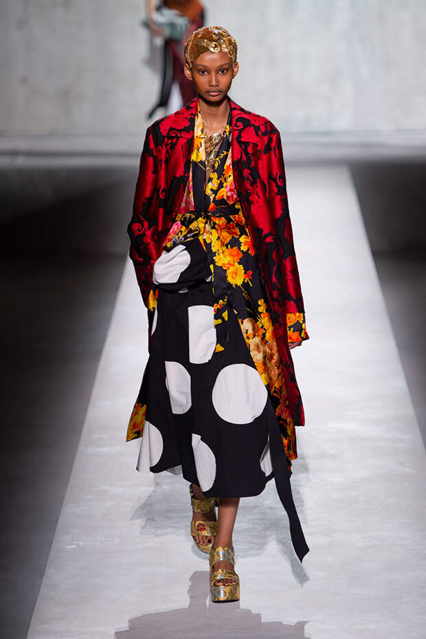 Отказываюсь выбирать — так можно обозначить девиз, под которым прошел показ весенне-летней коллекции Dries Van Noten. Потому что в ней разом оказалось все, что только можно представить. Все принты, фактуры, виды декора, которые в любой другой коллекции подавались бы по отдельности, как единичные акценты, здесь смешались в лихой, пестрый, красочный коктейль.