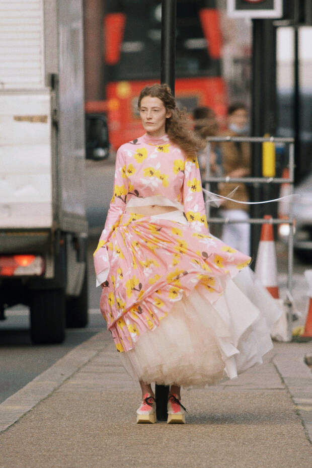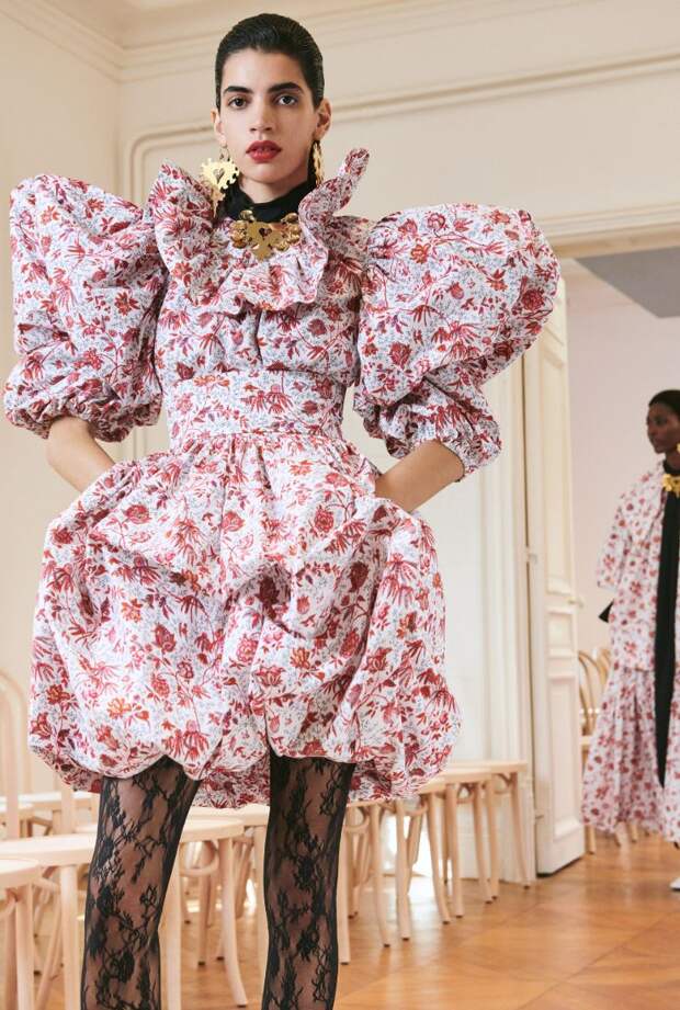 Как выглядит цветочный принт весной 2021? Он стал крупнее, ярче и смелее. Больше никаких деликатных чайных платьев и трогательных шелковых блузок в мелкий цветочек. Цветы этой весны родом из 80-х — поэтому они "разрослись" до гипертрофированно крупных размеров и окрасились в самые невероятные, подчас кислотные цвета. Направление тренду во многом задали Миучча Прада и Раф Симонс: в их дебютной совместной коллекции были щедро использованы графичные растительные мотивы (особенно выделялись знаковые оверсайз-пальто). Дальше — больше. Исполинские бутоны распустились на летящих вечерних платьях Valentino, дерзких мини Isabel Marant и платьях-неглиже с перьями Saint Laurent.