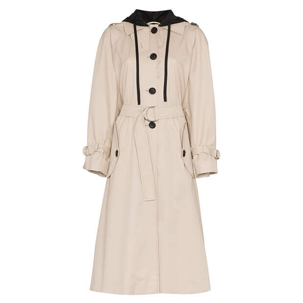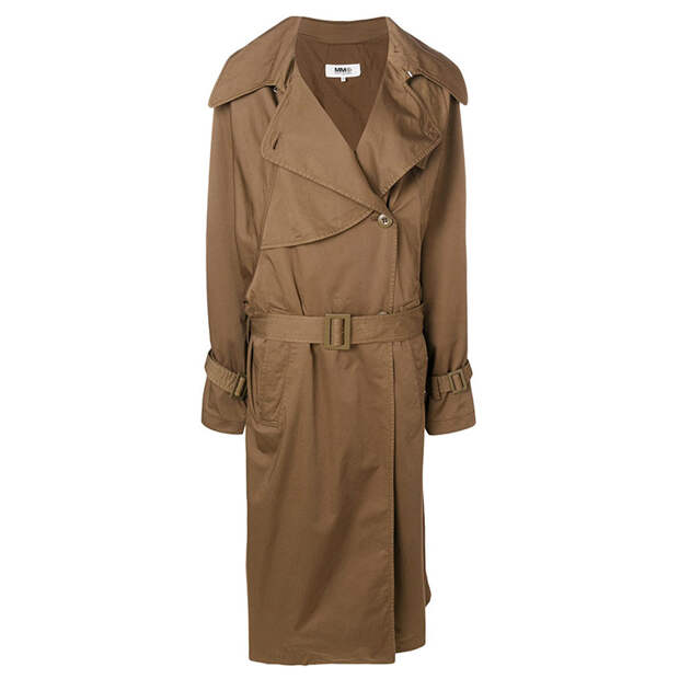 Отличные вариации привычной классики предлагают и другие бренды: у Miu Miu вы найдете модель с капюшоном, чем-то похожую на дождевик, а у MM6 Maison Margiela – тренч будто с мужского плеча.