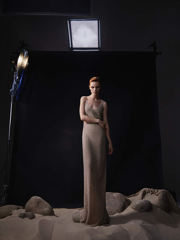 Александр Терехов показал "тизер" к осенне-зимнему сезону. Основу пре-коллекции составляют монохромные вещи. Единственным принтом стали изящные бабочки белого и аметистового цветов на контрастном чёрном фоне. Все внимание на себя забрали облегающие платья, будто сотканные из тонкой металлической полупрозрачной сетки, напоминающие кольчугу.