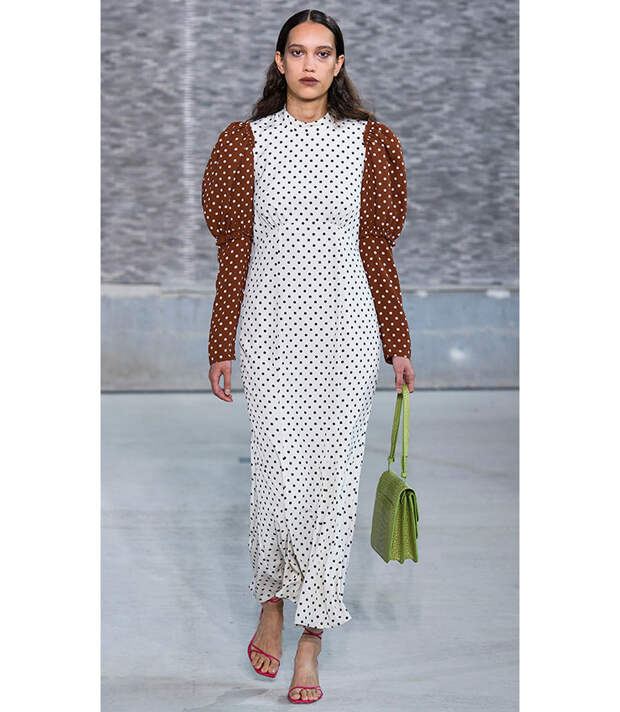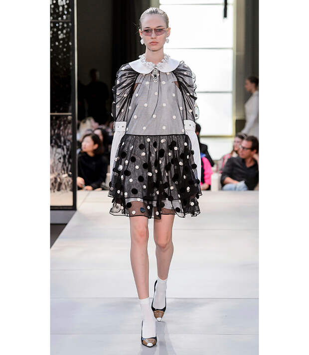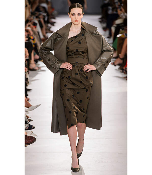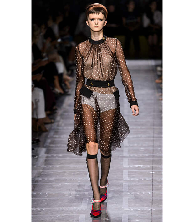 Аристократичный горох может выглядеть и иронично, и откровенно сексуально. Присмотритесь к прозрачным вариантам – блузке, прикрытой объемным костюмом в духе 80-х, как у Marc Jacobs, или нескромному платью, как у Prada. Впрочем, и совершеннейшая классика, как на показе Max Mara, имеет полное право на существование – особенно если образ остается в рамках актуального монохрома.