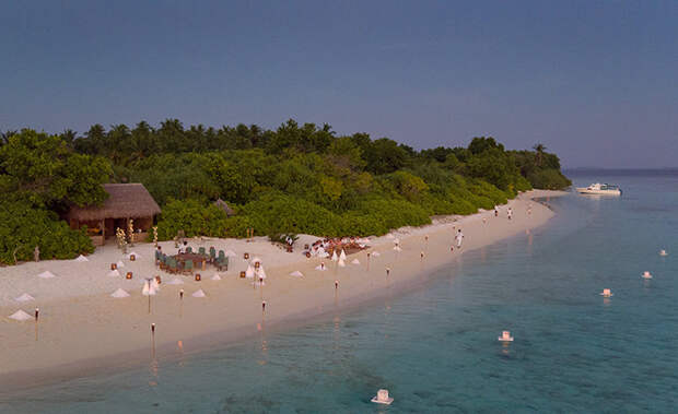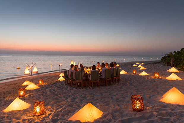 Ресторан Sobah открыт для гостей всего пару раз в неделю, но уникальным его делают не только часы работы (в целом, все места на Soneva Fushi располагают к расслабленному режиму: 24/7 — это не про Мальдивы). Sobah находится на необитаемом острове, и хотя дорога к нему занимает всего 15 минут на лодке, ужин здесь ощущается как настоящее приключение. Шеф для блюд использует только то, что растет и обитает на острове, а гостям предлагают лучшую развлекательную программу, которую только можно придумать — мы, конечно, о закате невероятной красоты.