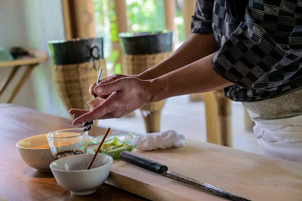 Для них Кенджи использует самые свежие (все морепродукты доставляют с токийского рынка Tsukiji или их ловят прямо на месте) и редкие ингредиенты. Рис для суши в So Hands On выращивают в японском регионе Kyushu, где сильная разница дневной и ночной температуры позволяет получить особенный вкус. Sobah Restaurant