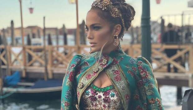 Дженнифер Лопес, например, приехала на шоу Alta Moda в по-настоящему королевском образе: она надела невероятный жаккардовый кейп с цветочным узором, брюки, усыпанные крупными бутонами роз, бра с вышивкой разноцветными кристаллами, головокружительные золотые босоножки на внушительной платформе и настоящую золотую диадему.