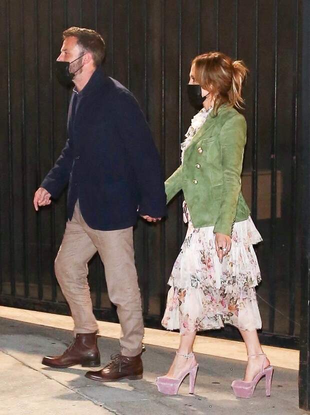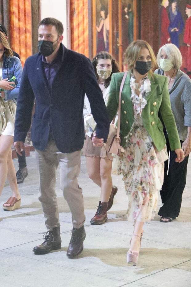 На мероприятие пошли дочери Аффлека, 15-летняя Вайолет и 12-летняя Серафина, и дети Лопес — 13-летние близнецы Макс и Эмм, рожденные в браке с музыкантом Марком Энтони. А вот 9-летний сын Бена, Самюэль, на мероприятии замечен не был. Также к походу в театр присоединилась мать актера — Кристофер. Для такого ответственного свидания Джей Ло выбрала очень нарядный образ: двубортный жакет из замши цвета свежей зелени Balmain с золотыми пуговицами, летящее платье в цветочек Zimmermann, розовую кожаную сумку на плечевом ремне Coach и бархатные пудровые босоножки на «фирменном» огромном каблуке и головокружительной платформе.