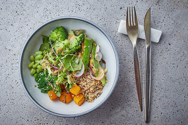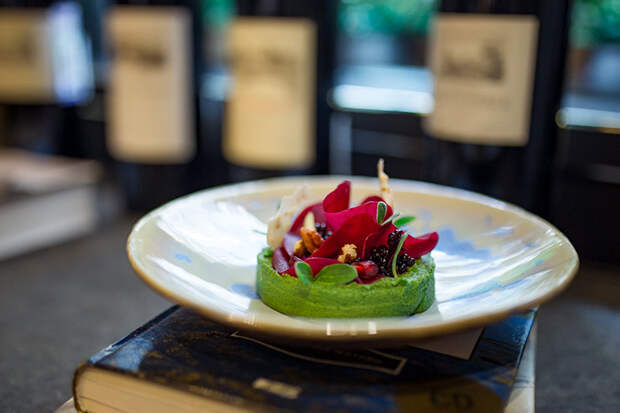 Севиче из сезонных овощей, имбирной дыни и мусса из томатной воды, а также поке с тыквой, брокколи, киноа, бобами эдамаме, чуккой, авокадо и ореховым соусом – думаю, меню Андрея Голубева, шефа заведений Лизы Стахановой на Пречистенской набережной, можно смело называть одним из лучших постных предложений сезона. Здесь также стоит пробовать тартар из свеклы с грушей и жареным тофу, ризотто из свежего зеленого горошка c муссом из нута с карри и кокосовую панна-котту. Еще обожаю это место за бесплатную парковку: теперь для каждого заведения в центре это отдельный жирный бонус.