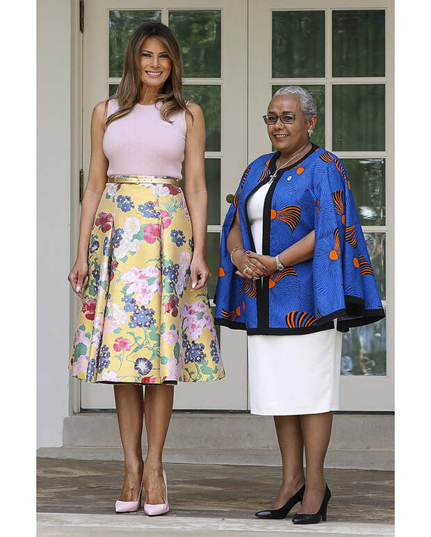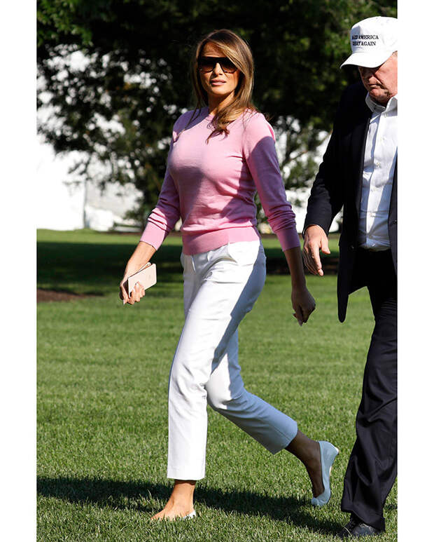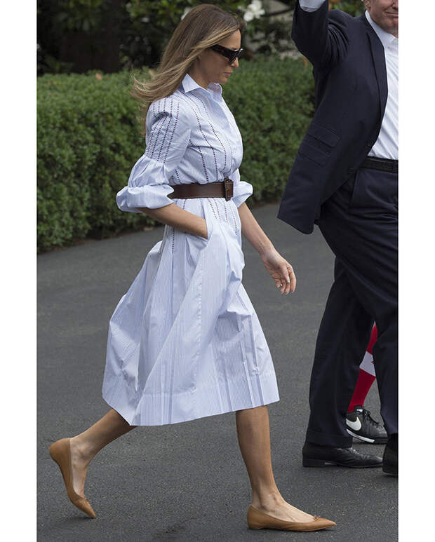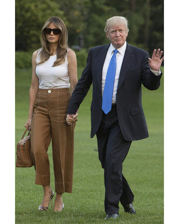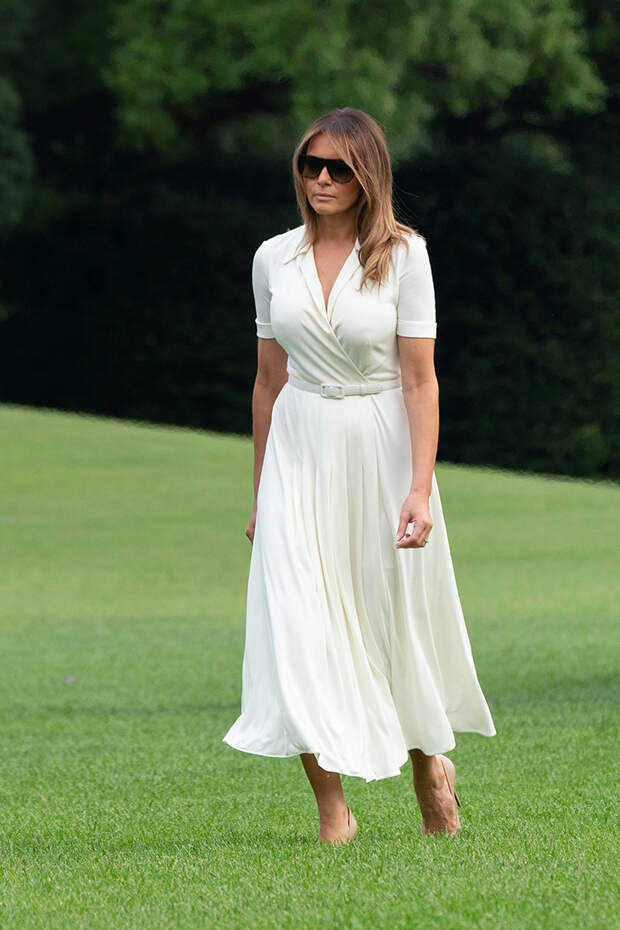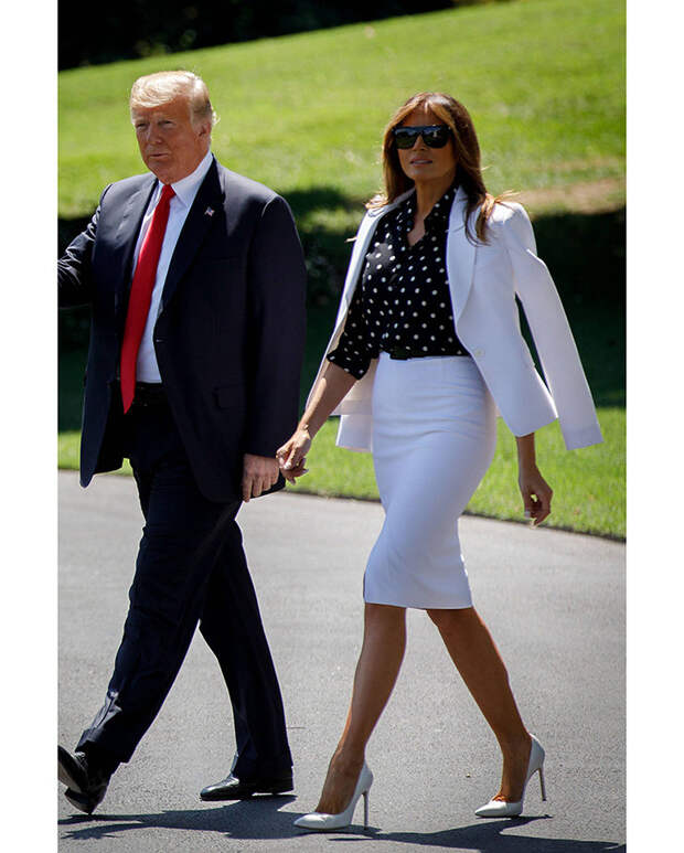 Единственное, за что цепляются СМИ - это стоимость некоторых предметов гардероба супруги президента, будь то плащ за 6 тысяч долларов или "крокодиловая" Birkin. Но Мелания - не народная героиня, она не стремится нравится всем, поэтому редко выходит в свет в одном и том же, игнорируя тренд на осознанное потребление, не стремится поддерживать локальных дизайнеров и не любит масс-маркет.Зато в ее гардеробе масса идеально сидящих платьев, которые она наглядно учит сочетать с лодочками разных оттенков. И эти сочетания обязательно нужно взять на заметку. Так же, как и привычку подчеркивать талию широким ремнем. Этот простой прием Мелания просто обожает. В летнем наборе миссис Трамп универсальные вещи: юбки-солнце, белоснежные костюмы, узкие джинсы, рубашки. Всем приверженцам классического делового стиля настоятельно советуем галерею ниже, чтобы вдохновиться на летние образы.