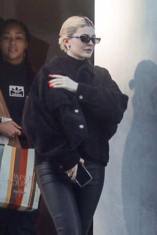 Кайли Дженнер уже вовсю готовится к праздникам и закупается подарками. В пятницу фотографы поймали звезду в Калабасасе, Калифорния, где Дженнер ходила по магазинам. Скорее всего, девушка пыталась слиться с толпой, поэтому надела полностью черный наряд: обтягивающие кожаные брюки, водолазка, вельветовая куртка и ботинки без каблука на шнуровке.