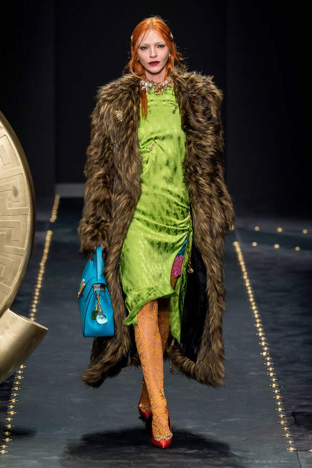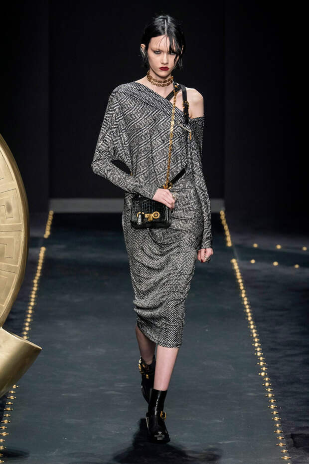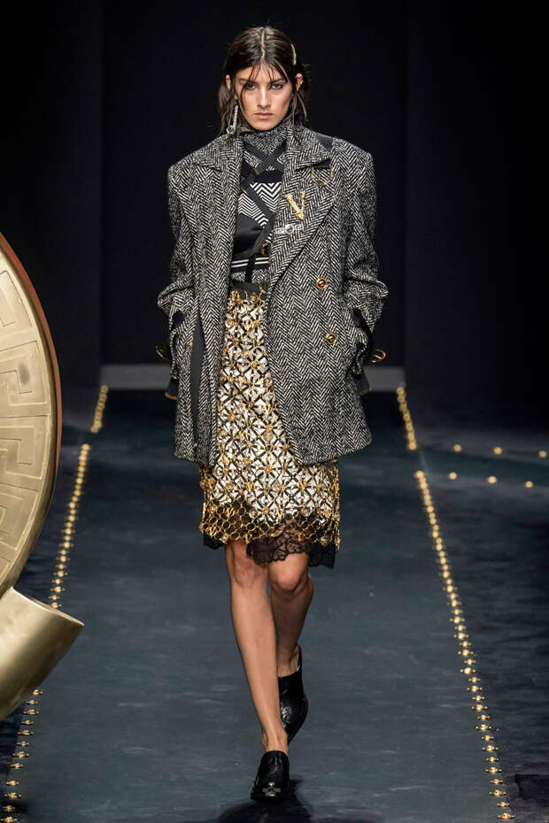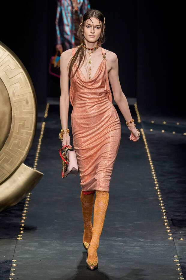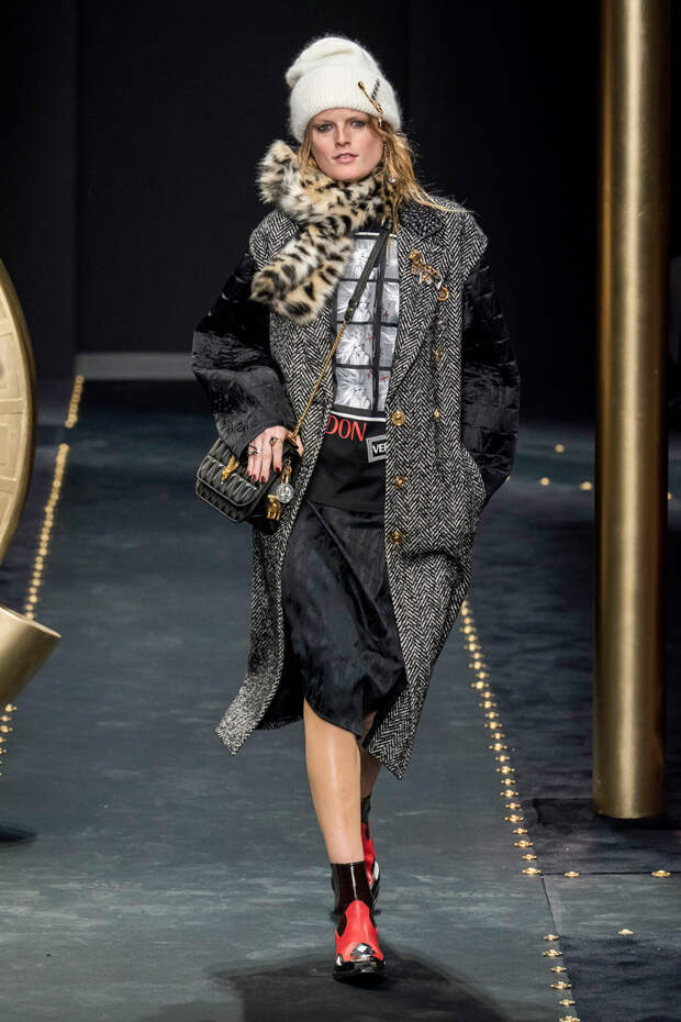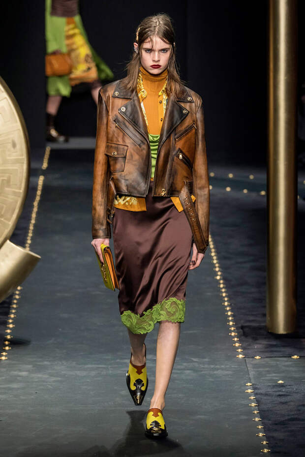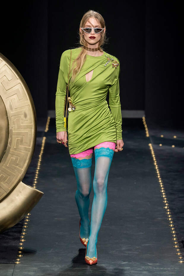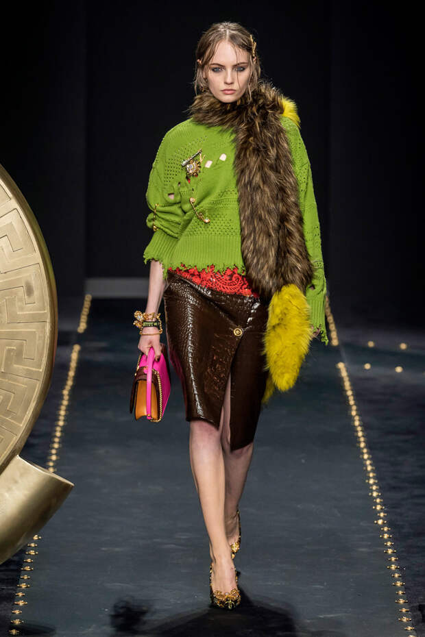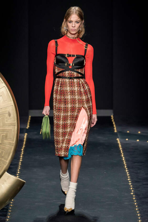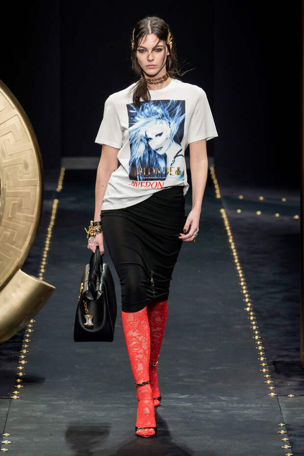 После нескольких архивных коллекцией, перепредставляющих наследие Джанни Версаче современным зрителям, Донателла Версаче неожиданно сделала ход конем — то есть взялась за тему, которая в коллекциях Джанни не возникала и не могла возникнуть никогда. Гранж. Стиль визуально дешевый, грязный, неопрятный — то есть абсолютно противоположный стилю Versace, каким мы его знаем.