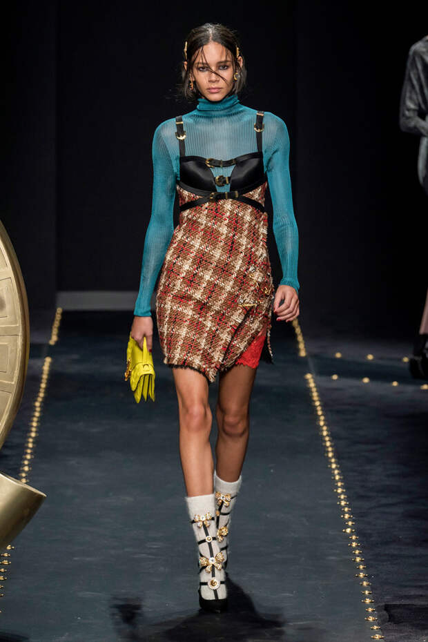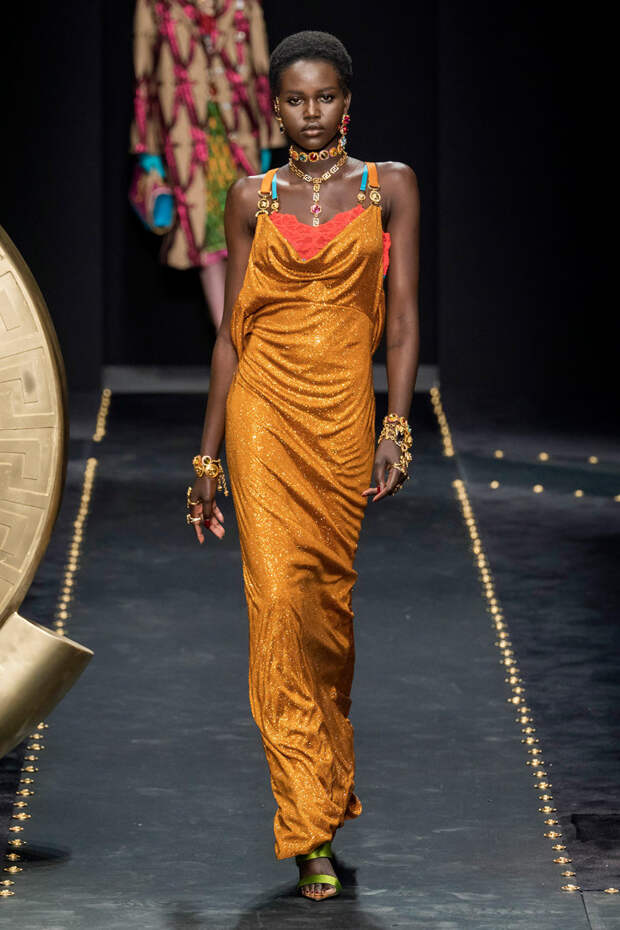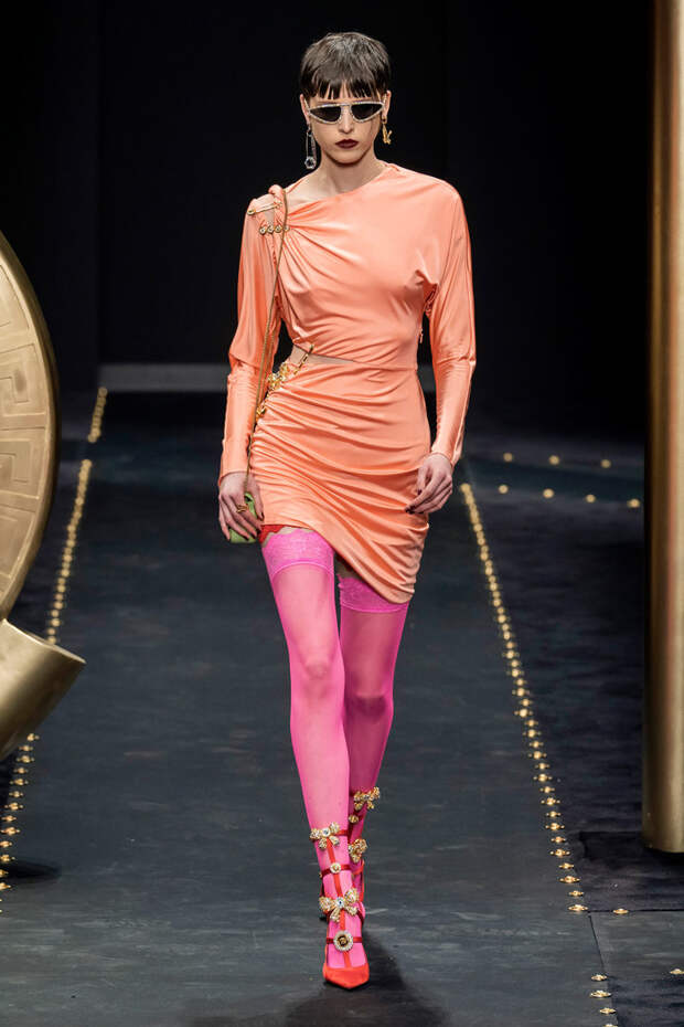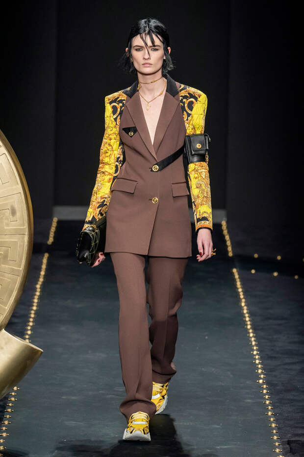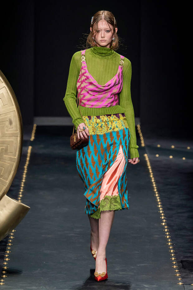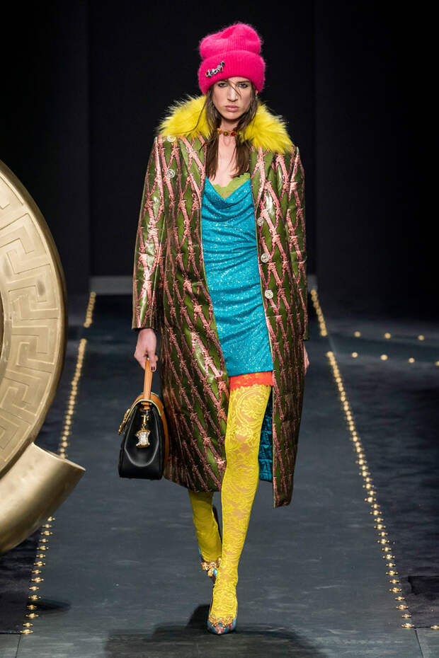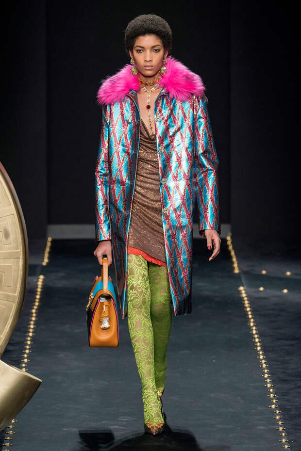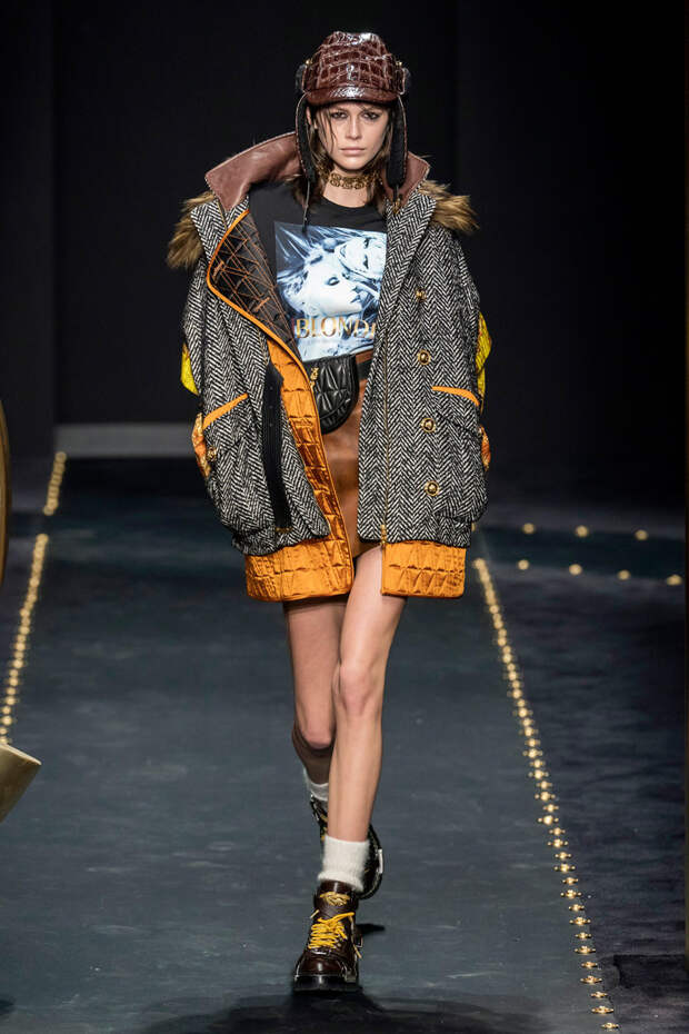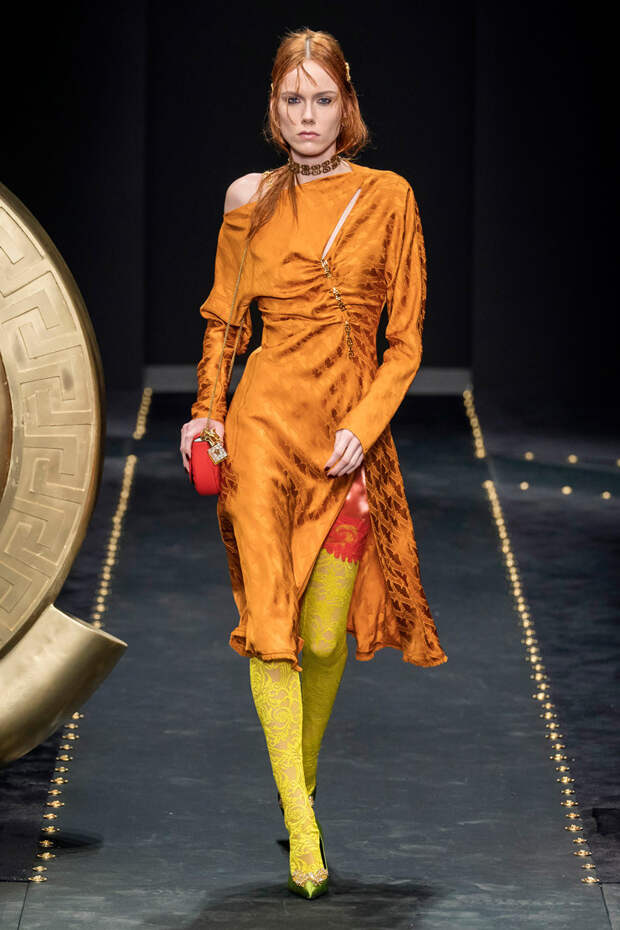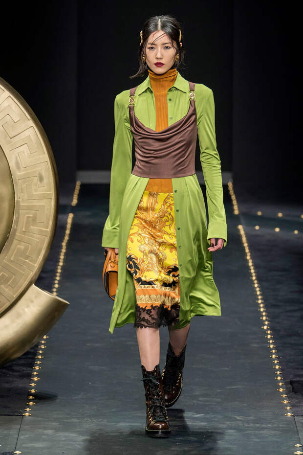 После нескольких архивных коллекцией, перепредставляющих наследие Джанни Версаче современным зрителям, Донателла Версаче неожиданно сделала ход конем — то есть взялась за тему, которая в коллекциях Джанни не возникала и не могла возникнуть никогда. Гранж. Стиль визуально дешевый, грязный, неопрятный — то есть абсолютно противоположный стилю Versace, каким мы его знаем.