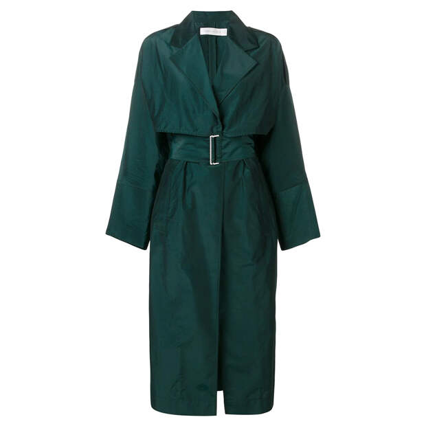 В этом сезоне тренчи должны быть максимально объемными и свободными, дарящими образу легкость и делающими силуэт более расслабленным и даже воздушным. Классические приталенные модели, да еще и в укороченном формате, будут смотреться неактуально, Вики и другие фэшиниста рекомендуют переходить на сторону оверсайза. И, конечно, наша героиня проявила свой неповторимый стиль и в этом вопросе: классическим оттенкам хаки и беж дизайнер предпочла более редкий для тренча черный цвет.