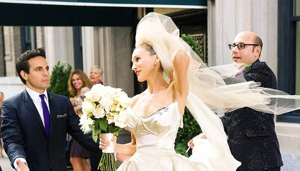 В 2008 году «последняя одинокая девушка Нью-Йорка» Кэрри Брэдшоу отправилась под венец (пусть и безуспешно) в платье авторства Вивьен Вествуд. И у нас, зрителей, при виде этого скульптурного корсета, многослойной "зефирной" юбки и воздушной фаты захватило дух не меньше, чем у героини "Секса в большом городе".
