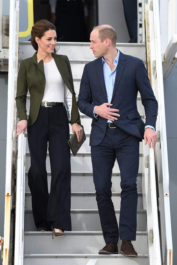 Интересно, что для вчерашней вечеринки Кейт выбрала расслабленный образ с юбкой и кардиганом, а для сегодняшней предпочла одеться строго. Ее наряд состоял из темных расклешенных брюк, приталенного жакета, клатча и туфель оливкового оттенка. Подобрав аксессуар и обувь в тон, герцогиня тем самым повторила тенденцию, заданную еще Викторией Бекхэм.