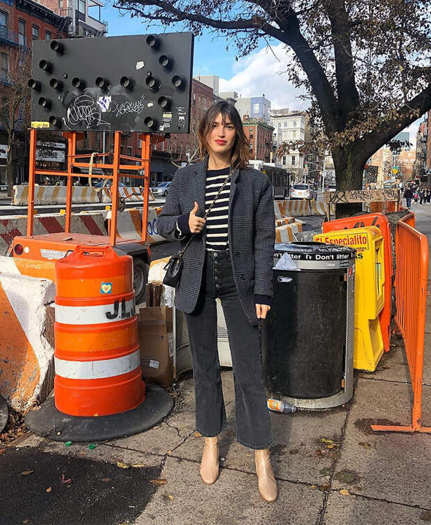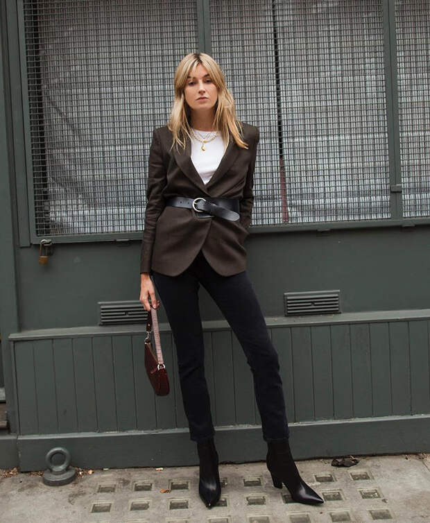 Мы составили пять универсальных комбинаций, которые позволят освежить образы с черными джинсами, не прибегая к экстравагантным экспериментам.Обратите внимание на светлую обувь — в этом сезоне она полюбилась как дизайнерам, так и звездам стритстайла. Бежевые сапоги или кремовые ботильоны — маст-хэвы осени и зимы. С черными джинсами они смотрятся повседневно, свежо и невычурно. К этой паре можно добавить черно-белое пальто или шерстяную куртку в клетку, которые выделятся благодаря сдержанным штанам из темного денима. Нет лучше ансамбля, чем леопардовая шуба, рокерская футболка и черные джинсы, — он смотрится одновременно смело и игриво, при этом подходит для ежедневной носки или на вечеринки. Можно так отправиться и на работу: добавьте лишь коричневый жакет для строгости, за которым будет прятаться топ с дерзким рисунком, — это станет изюминкой всего образа.