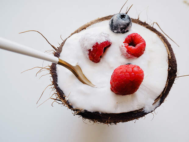 Кокосовый йогурт можно использовать точно так же, как и традиционный. Я очень люблю йогурт сам по себе, так как он содержит малое количество углеводов и очень насыщает, ибо кокосовое молоко достаточно жирное, но, как мы уже знаем, жиров бояться не нужно - необходимо следить за количеством углеводов, которое мы употребляем в течение дня, так как набор веса происходит от углеводов, а не жиров.