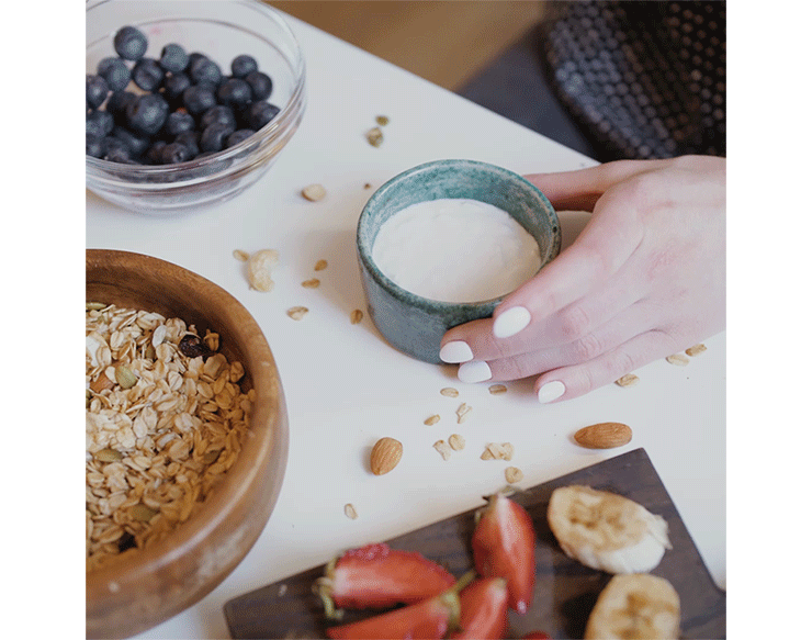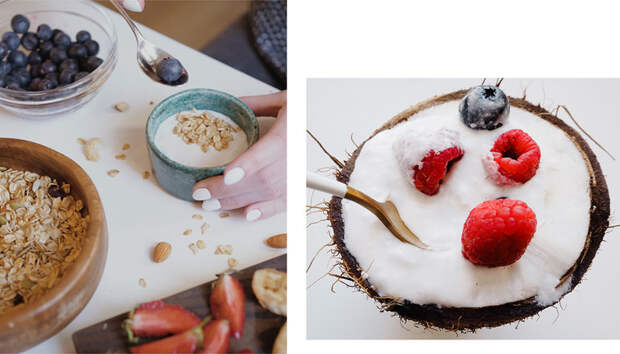1. К нежному кокосовому йогурту добавьте домашнюю гранолу.