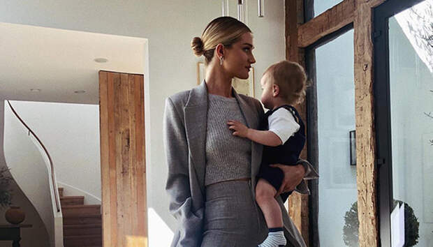 Роузи Хантингтон-Уайтли не ждет пока папарацци подловят ее стильный выход на улице. Она сама выкладывает свои образы в Instagram. Накануне супермодель выложила снимок, на котором она позирует вместе с годовалым сыном Джеком. Подпись гласит: "работающая мама". Роузи выбрала деловой стиль: серый костюм с облегающими брюками, топ в тон, белые мюли и низкий пучок.