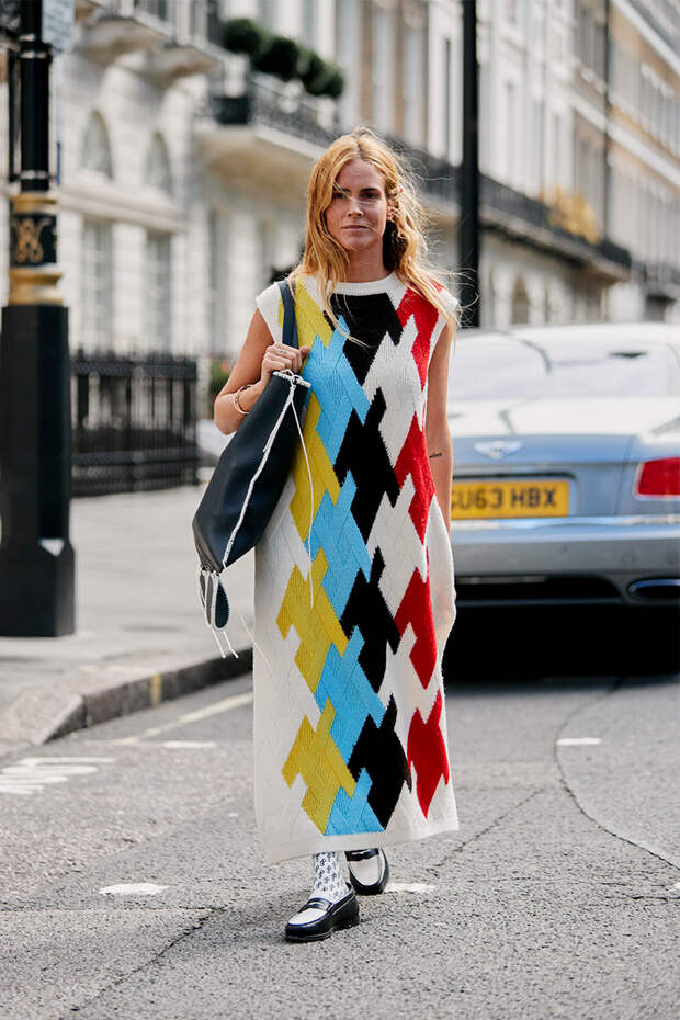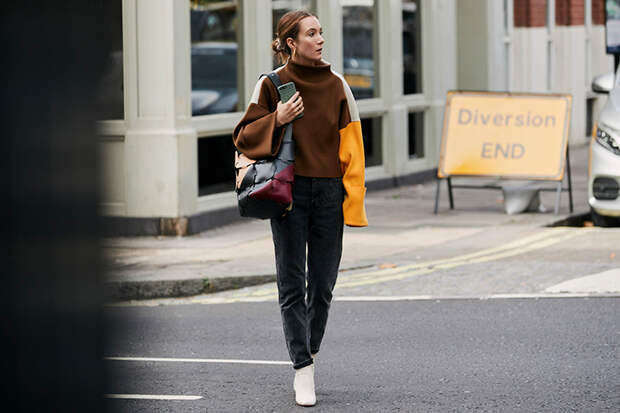 Обратить внимание точно стоит на тех, кто надевает не классические джемперы, которые легко найти во многих магазинах, а асимметричные или разноцветные модели. Они сочетают их с вельветовыми брюками и простыми джинсами. Некоторые модницы классическим шерстяным пальто предпочитают варианты из бархата с необычными деталями (большими карманами, яркой меховой оторочкой), которые носят под рабочие комбинезоны. Не обходится и без трикотажных платьев — к ним идут колготки с рисунком, лоферы и яркие ремешки.